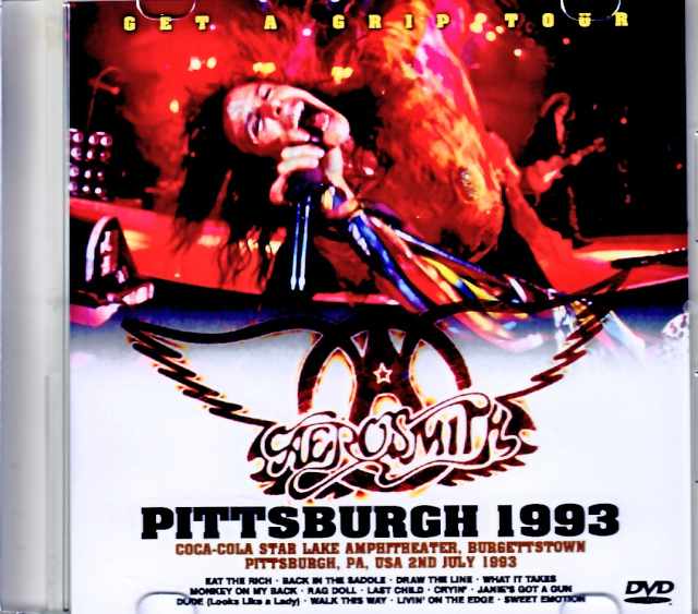Coca-Cola Star Lake Amphitheater, Burgettstown, Pittsburgh, PA, USA 2nd July 1993 PRO-SHOT (71:46) 1. Eat The Rich 2. Back In The Saddle 3. Draw The Line 4. What It Takes 5. Joe Perry Solo 6. Monkey On My Back 7. Rag Doll 8. Last Child 9. Cryin' 10. Janie's Got A Gun 11. Dude (Looks Like A Lady) 12. Joey Kramer Solo 13. Walk This Way 14. Livin' On The Edge 15. Tom Hamilton Solo 16. Sweet Emotion PRO-SHOT COLOUR NTSC Approx.72min.