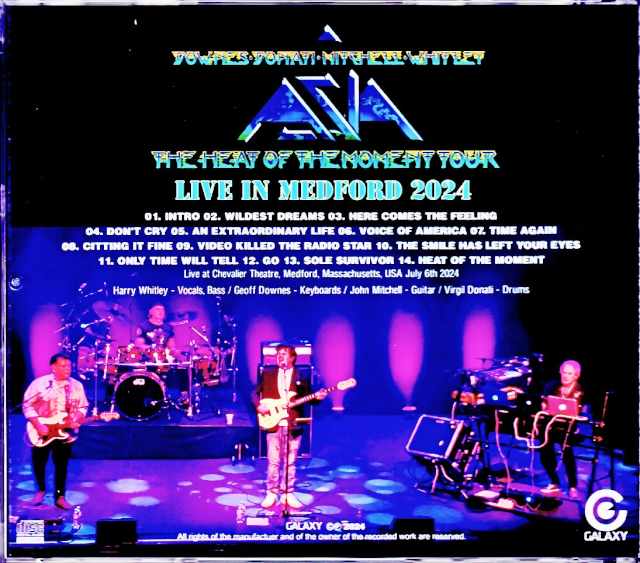 Although only Geoff Downes remains an original member, Asia has restarted with a new lineup in 2024. This DVD contains a complete recording of the July 6th Medford, Massachusetts performance from the "Heat of the Moments" North American tour, released by Taper, from the digital audience master. First of all, the lineup this time is John Mitchell, a guitarist known for It Bites and various sessions, Virgil Donati, who is famous as the drummer of Planet X, and Harry Whitley, a bassist and vocalist who is said to be the second coming of John Wetton. Asia was the headliner, and this tour began with legendary 70's UK and Dutch bands such as Focus, Wishbone Ash, and Curved Air. The main Asia band, Asia, played most of their set with representative numbers from their first and second hit albums, making this a must-listen for fans of the past. Live at Chevalier Theatre, Medford, Massachusetts, USA July 6th 2024 01. Intro/02. Wildest Dreams/03. Here Comes the Feeling/04. Don't Cry/05. An Extraordinary Life/06. Voice of America/07. Time Again/08. Citting It Fine/09. Video Killed the Radio Star/10. The Smile Has Left Your Eyes/11. Only Time Will Tell/12. . Sole Survivor/14. Heat of the Moment