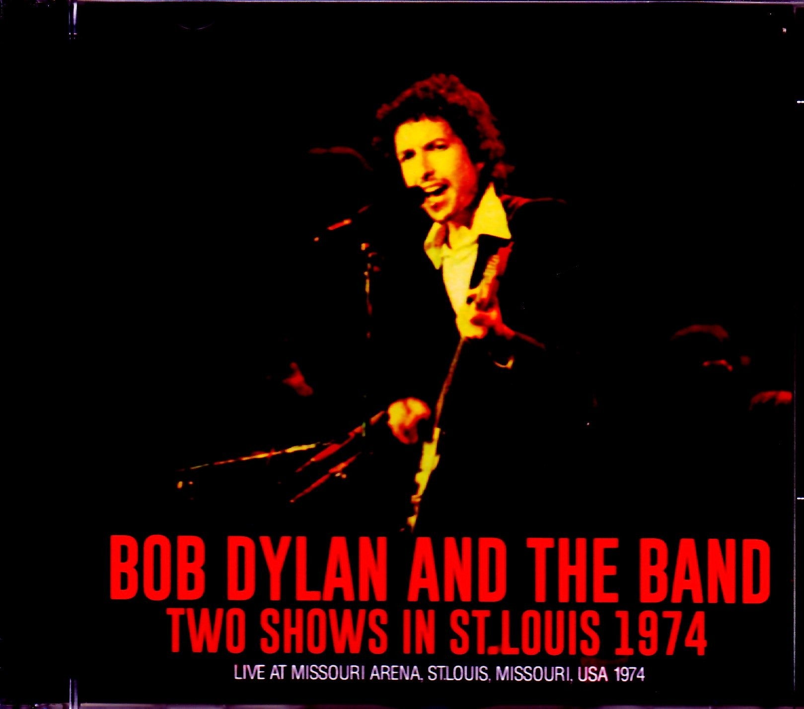 From the 1974 Bob Dylan and the Band's "Great Comeback" tour, all of Bob Dylan's parts, except for the songs performed by The Band, from the two day and night performances at the Missouri Arena in St. Louis, Missouri on February 4th. Recorded from high quality audience master. In the solo parts, "Heavy Rain Falls," "Ruined City," "It's Alright Ma," and the rare "Wedding Song" are performed on a rotating basis. It is a noteworthy title that can be said to be a collector's item that cannot be overlooked as it does not include the official live album! DISC ONE - AFTERNOON SHOW BOB DYLAN&THE BAND: 01. Most Likely You Go Your Way (And I'll Go Mine) 02. Lay Lady Lay 03. Just Like Tom Thumb's Blues 04. Rainy Day Women #12 & 35 05. It Ain 't Me Babe 06. Ballad Of A Thin Man 07. All Along The Watchtower 08. Ballad Of Hollis Brown 09. Knockin' On Heaven's Door BOB DYLAN: 10. The Times They Are A-Changin' 11. Don't Think Twice , It's Alright 12. A Hard Rain's A Gonna Fall 13. Just Like A Woman 14. Desolation Row BOB DYLAN&THE BAND: 15. Forever Young 16. Highway 61 Revisited 17. Like A Rolling Stone 18. Most Likely You Go Your Way (And I'll Go Mine) DISC TWO - EVENING SHOW BOB DYLAN&THE BAND: 01. Most Likely You Go Your Way (And I'll Go Mine) 02. Lay Lady Lay 03. Just Like Tom Thumb's Blues 04. Rainy Day Women #12 & 35 05. It Ain't Me /Babe 06. Ballad Of A Thin Man 07. All Along The Watchtower 08. Ballad Of Hollis Brown 09. Knockin' On Heaven's Door BOB DYLAN: 10. The Times They Are A-Changin' 11. Don't Think Twice, It's Alright 12. Wedding Song 13. Just Like A Woman 14. It's Alright Ma (I'm Only Bleeding) BOB DYLAN&THE BAND: 15. Forever Young 16. Highway 61 Revisited 17. Like A Rolling Stone 18. Most Likely You Go Your Way (And I'll Go Mine) Live At Missouri Arena, St.Louis, Missouri, USA February 4th 1974