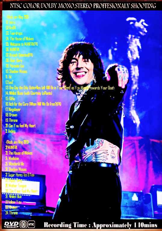 Rock am Ring 2023 & 2019 Nürburgring: Nürburg Germany 04th June 2023 & Nurburgring:Nurburg Germany 08th June 2019 Proshot NTSC Menu Chapter Region0201.Intro 02.AmEN! 03.Teardrops 04.The House of Wolves 05.Welcome to MANTRA(PA) 06.MANTRA 07.Breach Detected(PA) 08.Dear Diary 09.Parasite Eve 10.Shadow Moses 11.1x1 12.LosT 13.One Day the Only Butterflies Left Will Be in Your Chest as You March Towards Your Death (with Courtney LaPlante) 14.Nihilist Blues (with Courtney LaPlante) 15.DiE4u 16.Itch for the Cure (When Will We Be Free?)(PA) 17.Kingslayer 18.Drown 19.Throne 20.Can You Feel My Heart 21.Ending -(Rock am Ring 2019)- 22.MANTRA 23.The House of Wolves 24.Medicine 25.Wonderful life 26.Shadow Moses 27.Sugar Honey Ice & Tea 28.Happy Song 29.Mother Tongue 30.Can Your Feel My Heart 31.Nihilist Blue 32.Follow You 33.Drown 34.Throne