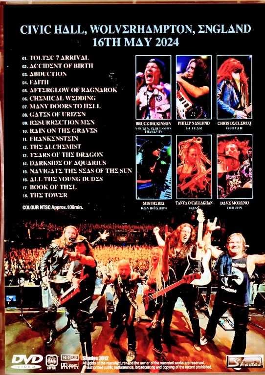 Civic Hall, Wolverhampton, England 16th May 2024 AMAZING SHOT!!! 1. Toltec 7 Arrival 2. Accident Of Birth 3. Abduction 4. Faith Song of the ★ Day 5. Afterglow Of Ragnarok 6. Chemical Wedding 7. Many Doors To Hell 8. Gates Of Urizen ★ Songs Not in the Previous 9. Resurrection Men 10. Rain On The Graves 11. Frankenstein 12. The Alchemist 13. Tears Of The Dragon 14. Darkside Of Aquarius 15. Navigate The Seas Of The Sun 16. All The Young Dudes ★ 17. Book Of Thel 18. The Tower COLOUR NTSC Approx.106min. – Vocals, Percussi,Theremin Chris DeClaek – guitar Philip Nasrund – guitar Mysteria – keyboards Tanya O'Kallaghan – bass Dev Moreno – drums