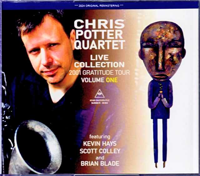 Currently (2024), Chris Potter is well known as one of the best saxophone players, and this is a compilation of his 2001 live performances on the tour of his masterpiece album "Gratitude," which paid tribute to the great predecessors who became his roots. The members are Kevin Hayes, Scott Colley, and Brian Blade, the same as in "Gratitude." All the sound sources are high-quality soundboards and have been remastered, so even beginners to collectors can enjoy them with confidence. LIVE COLLECTION : 2001 GRATITUDE TOUR VOLUME ONE DISC 1 Recorded Live at Stadtgarten, Cologne, Germany, March 29, 2001 EXCELLENT Soundboard Recording // 94 min 1. THE MIND'S EYE for Michael Brecker and Joe Lovano 2. HIGH NOON for Eddie Harris 3. THE SOURCE for John Coltrane 4. EURYDICE for Wayne Shorter DIS C 2 1. OKINAWA 2. SUN KING for Sonny Rollins 3. THE VISITOR for Lester Young DISC 3 Recorded Live at Off Beat Jazz Festival, Basel, Switzerland, April 26, 2001 EXCELLENT Soundboard Recording // 61 min 1. THE SOURCE for John Coltrane 2. SHADOW for Joe Henderson 3. STAR EYES for Charlie Parker 4. HIGH NOON for Eddie Harris DISC 4 Recorded Live at Stadtgarten, Cologne, Germany, April 29, 2001 EXCELLENT Soundboard Recording // 79 min 1. THE MIND'S EYE for Michael Brecker and Joe Lovano 2. HIGH NOON for Eddie Harris 3. THE SOURCE for John Coltrane 4. THE VISITOR for Lester Young 5. EURYDICE for Wayne Shorter 6. OKINAWA Chris Potter - tenor saxophone, soprano saxophone Kevin Hays - piano Scott Colley - bass Brian Blade - drums