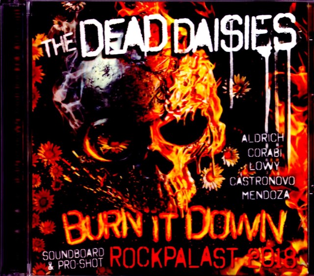 The Dead Daisies' stage performance at "Rockpalast" held in Cologne, Germany on May 5, 2018 is now available as a soundboard and pro shot item! The DVD uses new technology to minimize the degradation of full HD sources and achieve high image quality approaching Blu-ray! (New technology that transcodes the image quality degradation caused by down-converting HD sources to DVD format to the highest possible definition). Moreover, the sound is also mastered separately for further high quality and optimization! The CD also has a super powerful and hot sound with professional-grade digital mastering that cannot be imitated anywhere else! Please enjoy the best sound quality that you can't experience on DVD! There is no need for detailed explanations anymore! The definitive version of their "Burn It Down" tour, which has been further powered up with the addition of former Journey drummer Dean Castronovo! 95 minutes of excitement! A must-listen and see performance full of highlights! The complete 2018 soundboard and pro shot item is now available! A must-have for fans!! Live At Live Music Hall, Cologne, Germany May 5th 2018 (CD 1) 01. Resurrected 02. Rise Up 03. Make Some Noise 04. Song And A Prayer 05. Dead And Gone 06. Mexico 07. What Goes Around 08. Doug Aldrich Guitar Solo 09. Last Time I Saw The Sun 10. Can't Take It With You 11. All The Same 1 2. Deen Castrnovo Drum Solo 13. Bitch (The Rolling Stones)... 56'15 (CD 2) 01. With You And I -Band Intro Jam (02-06)- 02. Rock And Roll All Night (Deen Castronovo) 03. Highway To Hell (David Lowy) 04. The Boys Are Back In Town (Marco Mendoza)05. Smoke On The Water (Doug Aldrich) 06. Heaven And Hell (John Corabi) 07. Mainline 08. Long Way To Go 09. Midnight Moses (The Sensational Alex Harvey Band ) -Encore- 10. Judgment Day 11. Helter Skelter (The Beatles)... 38'05 (DVD) 01. Resurrected 02. Rise Up 03. Make Some Noise 04. Song And A Prayer 05. Dead And Gone 06. Mexico 07. What Goes Around 08. Doug Aldrich Guitar Solo 09. Last Time I Saw The Sun 10. Can't Take It With You 11. All The Same 12. Deen Castrnovo Drum Solo 13. Bitch (The Rolling Stones) 14. With You And I -Band Intro Jam (15-19)- 15. Rock And Roll All Night (Deen Castronovo) 16. Highway To Hell (David Lowy) 17. The Boys Are Back In Town (Marco Mendoza)18. Smoke On The Water (Doug Aldrich) 19. Heaven And Hell (John Corabi) 20. Mainline 21. Long Way To Go 22. Midnight Moses (The Sensational Alex Harvey Band ) 23. Judgment Day 24. Helter Skelter (The Beatles)... Approx: 95min. John Cor abi - lead vocals, guitar, percussion Doug Aldrich - lead guitar Marco Mendoza - bass, vocals David Lowy - rhythm guitar Deen Castronovo - drums, percussion, vocals SOUNDBOARD & PRO-SHOT 95min