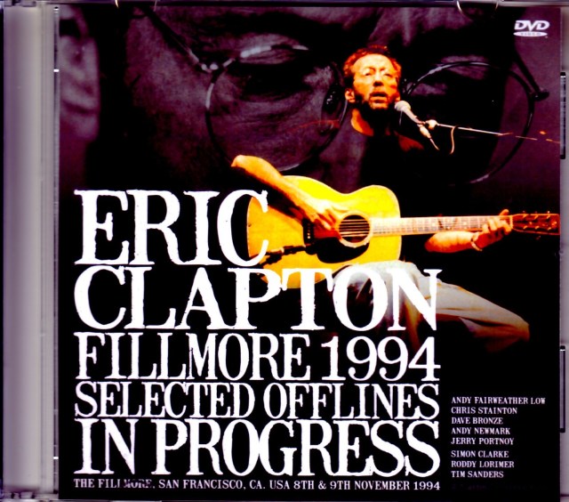 Live at the Fillmore, San Francisco, CA. USA 8th & 9th November 1994 PRO-SHOT(from Original VHS Master) Taken from the original "Reprise Records" VHS master tape, titled "Fillmore - Selected Offlines In Progress" & "Reprise Records The Mastering Studio 02/15/1995" (1:16:28) 1. Malted Milk 2. Forty-Four Blues 3. Standing Around Crying 4 . It Hurts Me Too 5. Reconsider Baby 6. Sinner's Prayer* 7. Someday After A While 8. I'm Tore Down*9. Crosscut Saw* 10. Crossroads 11. Driftin'* 12. Ain't Nobody's Business 13. Have You Ever Loved A Woman 14. Blues Leave Me Alone 15. Third Degree* * Songs marked with an asterisk (*) are songs that were not included in the film. Eric Clapton - Guitar, Vocals Andy Fairweather Low - Rhythm Guitar Jerry Portnoy - Harmonica Chris Stainton - Keyboards Dave Bronze - Bass Andy Newmark - Drums Roddy Lorimer - Trumpet Tim Sanders - Tenor Sax Simon Clarke - Baritone Sax PRO-SHOT COLOUR NTSC Approx. 76min.