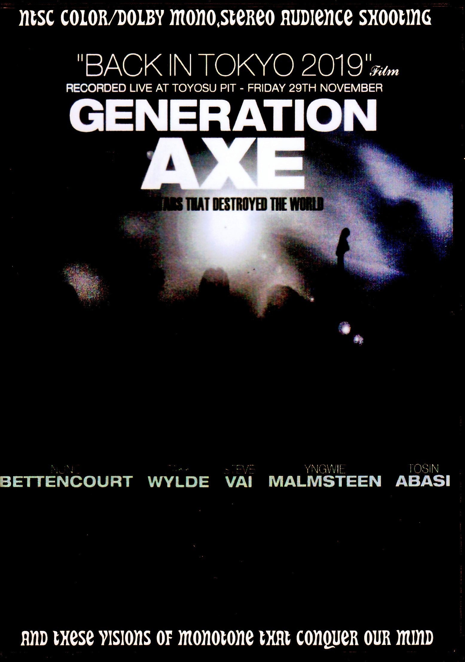 Generation Ax is a super unit featuring five super guitarists, including Steve Vai, Nuno Bettencourt, Zakk Wylde, Yngwie Malmsteen, and Tosin Abbasi. An item that records the final day of the Tokyo performance held at Toyosu PIT on November 29th from the tour to Japan for the first time in two and a half years since the spring of 2017, in full HD quality original video master! The middle of "Hocus Pocus" at the beginning of the live show, and the performance scene in the middle of the show where Zack part goes down to the arena, are blacked out because the video is missing for convenience, and only the audio is recorded. Other than that, the camera was almost never put down, and it was recorded with a stable audience shot until the end of the live performance. The audio section uses a multi-IEM matrix sound source supervised by the label, allowing you to enjoy live performances with the same quality as a stereo sound board sound source. *There are some parts where clicks, counts, and slight noises occur due to some IEM masters. Recorded content = November 29, 2019 Toyosu PIT performance Sound source = Multi stereo IEM + original AUD matrix source / 180min. Aud-shot Toyosu PIT, Tokyo, Japan 29th November 2019 DVD 1 01. Intro 02. Hocus Pocus 03. Tempting Time 04. The Woven Web 05. CAFO 06. Physical Education (with Nuno) 07. Get the Funk Out 08. Midnight Express 09. A Side of Mash (Extreme Medley) 10. Sideways (with Zakk) 11. Purple Haze 12. I 'm Broken / Into the Void 13. War Pigs 14. Still Got the Blues (with Nuno & Steve) DVD 2 01. There's a Fire in the House 02. The Animal 03. For The Love Of God 04. Top Down. Foot Down 05. No Rest For The Wicked 06. Into Valhalla 07. Baroque and Roll 08. Overture / From A Thousand Cuts / Arpeggios From Hell 09. Soldier / Badinerie 10. Adagio 11. Far Beyond the Sun 12. Trilogy Suite Op: 5 / Guitar Solo 13. Fugue / Guitar Solo 14. Acoustic Guitar Solo / Black Star 15. Bohemian Rhapsody 16. Burn