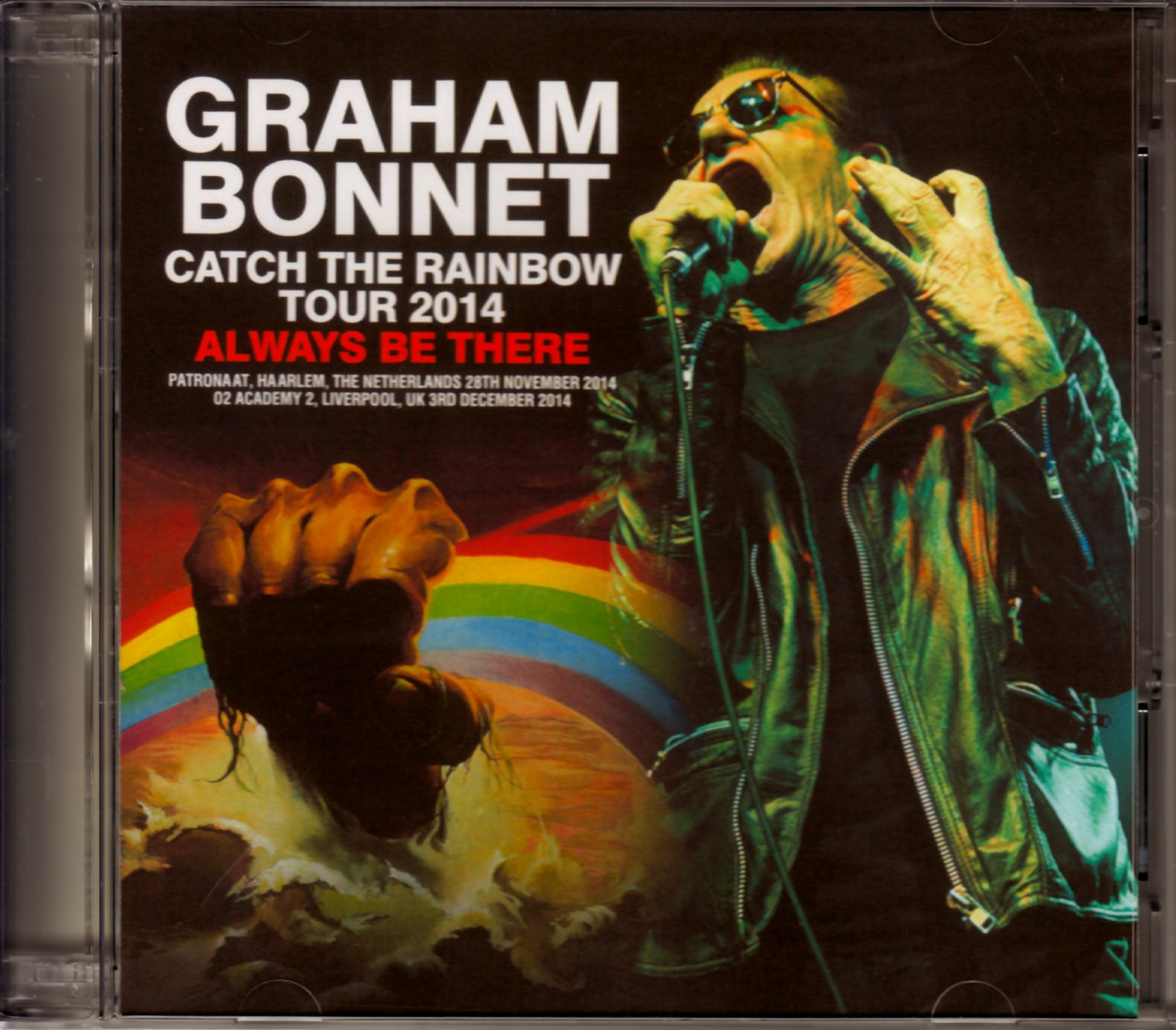 Disc 1(79:59) Live at Patronaat, Haarlem, The Netherlands 28th November 2014 1. Intro 2. All Night Long 3. Love's No Friend 4. Makin' Love 5. Bad Girl 6. MC 7. The Witchwood 8. MC 9. Always Be There 10. Eight Days A Week 11. MC 12. Mirror Lies 13. Johnny B. Goode 14. Seven Deadly Sins (Guitar & Drum Solo) 15. Night Games 16. Since You Been Gone 17. Lost In Hollywood Live at O2 Academy 2, Liverpool, UK 3rd December 2014 Disc 2(68:50) 1. Intro 2. All Night Long 3. Love's No Friend 4. Makin' Love 5. Bad Girl 6. Member Introduction / MC 7. Always Be There 8. Eight Days A Week 9. The Witchwood 10. The Mirror Lies 11. Seven Deadly Sins (Guitar & Drum Solo) 12. Since You Been Gone 13. Lost In Hollywood 14. Night Games Graham Bonnet – Lead Vocals, Guitar Beth-Ami Heavenstone – Bass, Backing Vocals Conrado Pesinato – Guitar, Backing Vocals Justin Lack – Drums