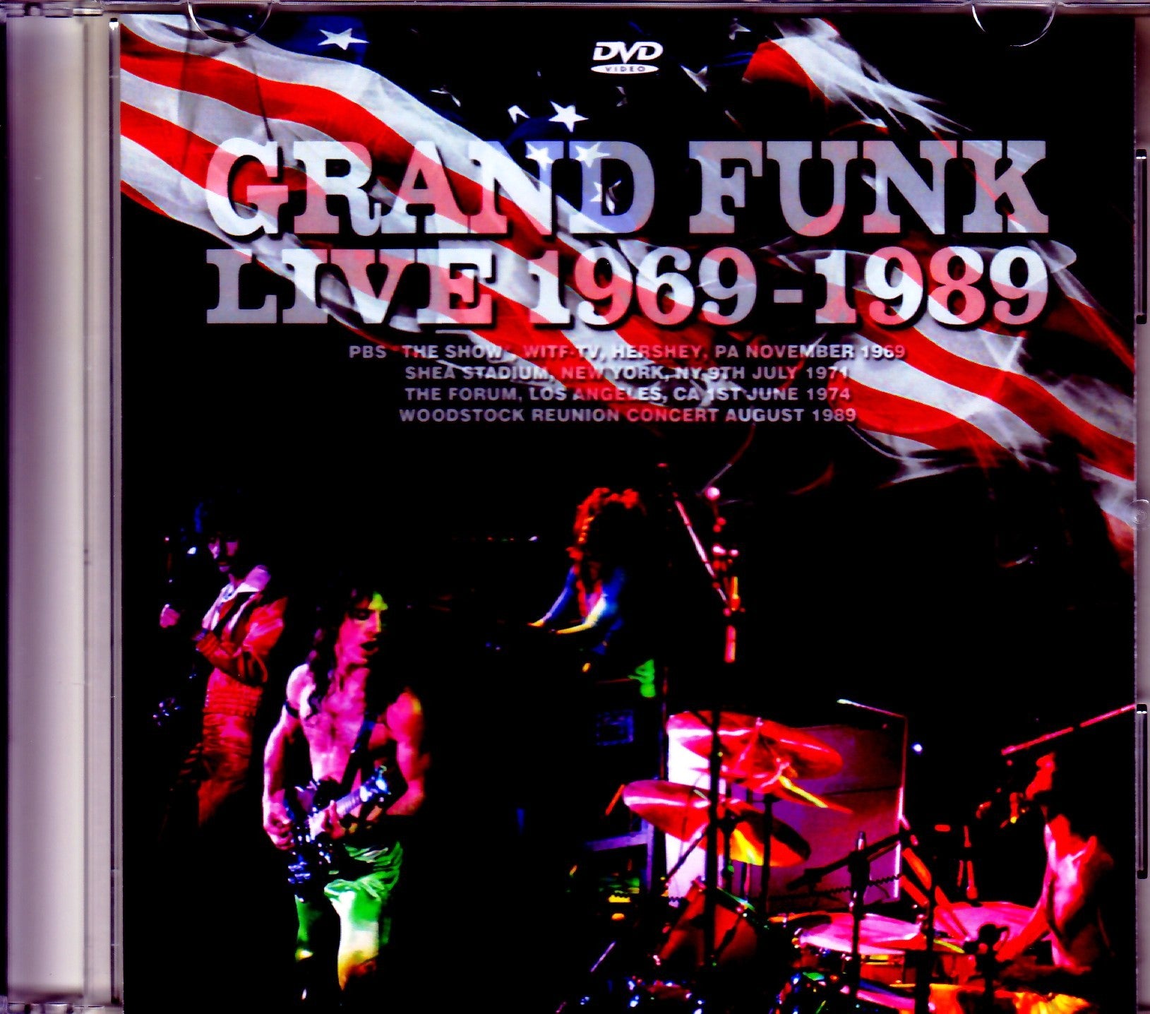 1. Intro PBS "The Show", WITF-TV, Hershey, PA November 1969 2. Inside Looking Out Shea Stadium, New York, NY 9th July 1971 3. I'm Your Captain (Closer To Home) 4. Studio Talk The Forum, Los Angeles, CA 1st June 1974 5. Footstompin' Music 6. Rock & Roll Soul 7. Heartbreaker 8. Shinin' On 9. The Loco-Motion 10. We're An American Band 11. T.N.U.C. 12. Drum Solo 13. Inside Looking Out Mark Farner - vocals, guitar, keyboards, harmonica Craig Frost - keyboards, backing vocals Don Brewer - drums vocals Mel Schacher - bass 14. Studio Talk Woodstock Reunion Concert August 1989 15. Bad Time 16. I'm Your Captain (Closer To Home) 17. Heartbreaker Mark Farner - vocals, guitar Arnie Vilches - Guitar Mike Maple - Drums Lawrence Buchner - Bass Michael Blair - Keyboards 18. Outro PRO-SHOT COLOR NTSC Approx.89min.