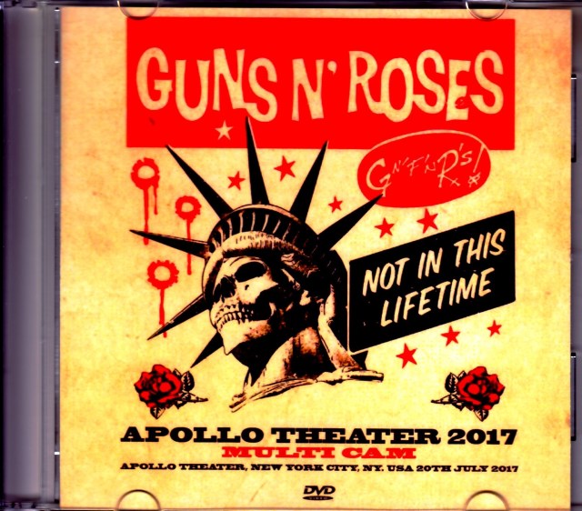 Live at the Apollo Theater, New York City, NY. USA 20th July 2017 (synced with STERO SBD) (185:54) 1. Looney Tunes 2. The Equalizer 3. It's So Easy 4. Mr. Brownstone 5. Chinese Democracy 6. Welcome to the Jungle 7. Double Talkin' Jive 8. Better 9. Estranged 10. Live and Let Die 11. Rocket Queen 12. You Could Be Mine 13. New Rose 14. This I Love 15. Civil War 16. Yesterdays 17. Coma 18. Band Introductions 19. Slash Guitar Solo (with Johnny B Goode intro) 20. Speak Softly Love (Love Theme From The Godfather) 21. Sweet Child O' Mine 22. My Michelle 23. Whole Lotta Rosie 24. Wish You Were Here 25. Layla piano exit intro 26. November Rain 27. Black Hole Sun 28. Knockin' on Heaven's Door 29. Nightrain 30. Sorry 31. Patience (with Melissa Intro) 32. The Seeker 33. Paradise City PRO-SHOT COLOUR NTSC Approx.186min.