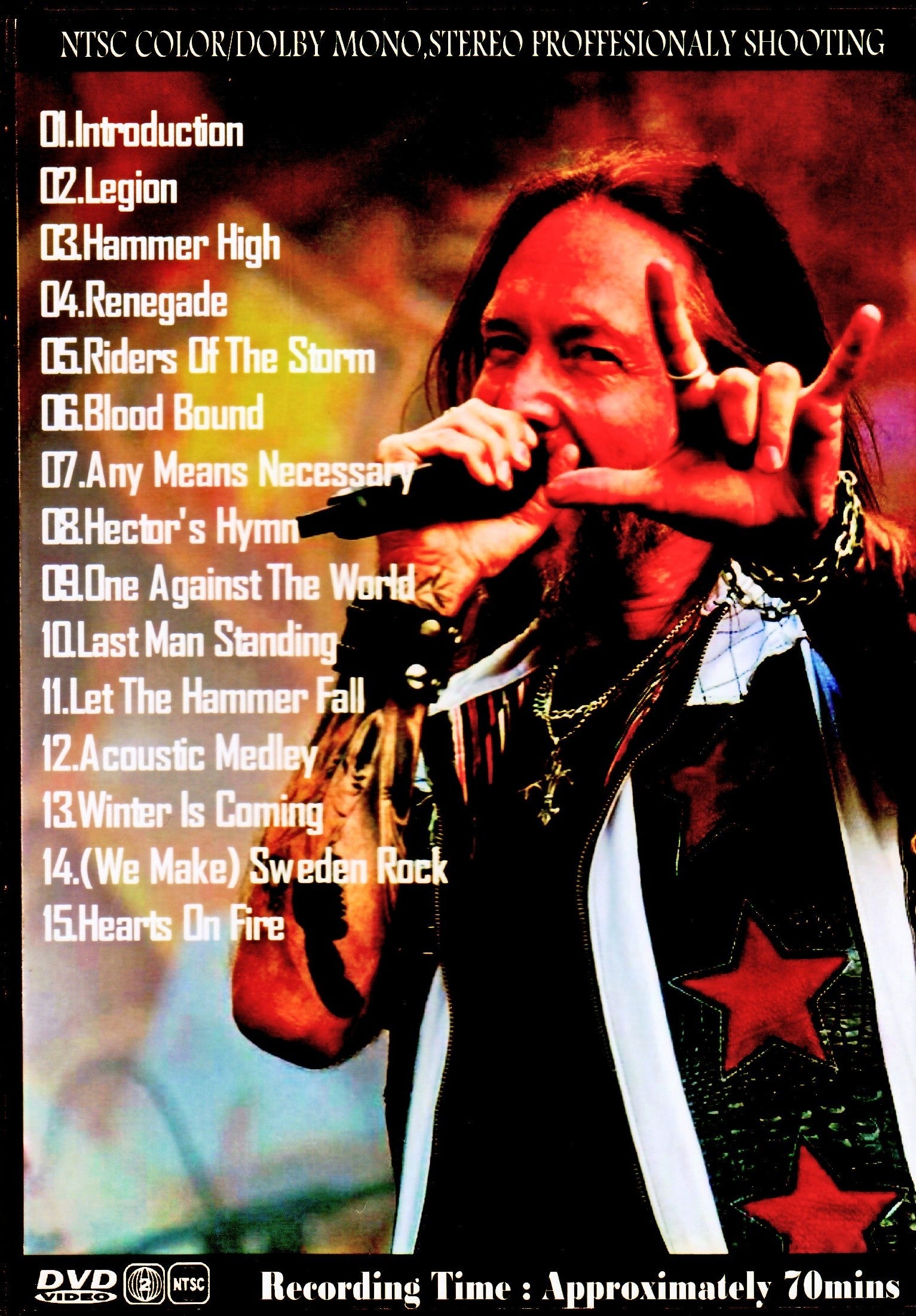 01.Introduction 02.Legion 03.Hammer High 04.Renegade 05.Riders Of The Storm 06.Blood Bound 07.Any Means Necessary 08.Hector's Hymn 09.One Against The World 10.Last Man Standing 11.Let The Hammer Fall 12 .Acoustic Medley 13.Winter Is Coming 14.(We Make) Sweden Rock 15.Hearts On Fire