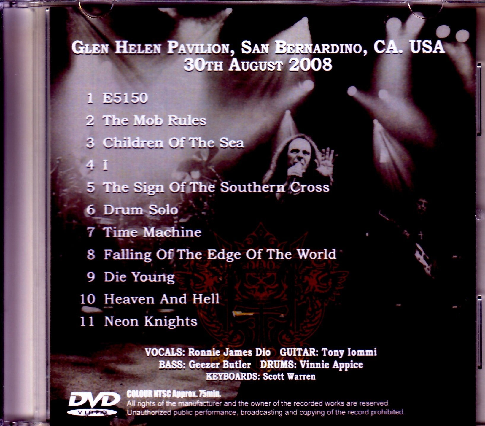1. E5150 2. The Mob Rules 3. Children Of The Sea 4. I 5. The Sign Of The Southern Cross 6. Drum Solo 7. Time Machine 8. Falling Of The Edge Of The World 9. Die Young 10. Heaven And Hell 11. Neon Knights Ronnie James Dio - Vocals Tony Iommi - Guitar Geezer Butler - Bass Vinny Appice - Drums Scott Warren - Keyboards COLOR NTSC Approx. 76min.