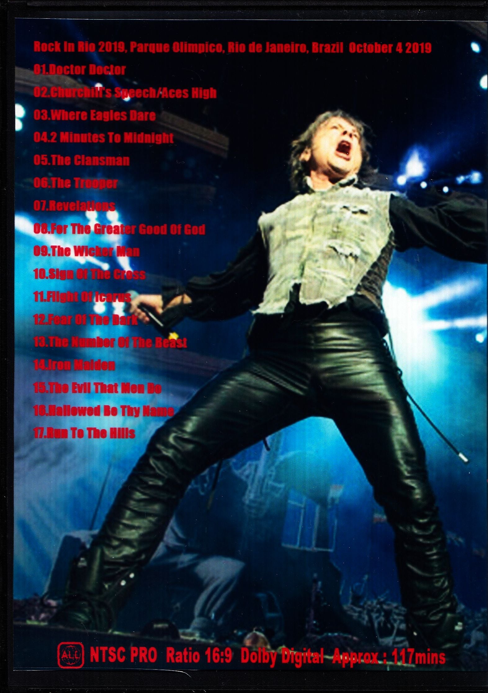 This is a video recording of the performance at "Rock In Rio" held in Rio de Janeiro, Brazil, South America, for 3 days from September 27th to 30th and 3rd and 6th days from October 4th to 5th. Iron Maiden performed on Heavy Metal/Hard Rock Day on October 4th with Scorpions, Iron Maiden, Halloween, Slayer, etc. “Legacy Of The Beast Tour '19” is being performed on the “Rock In Rio” stage as it is. This pattern was streamed live, and a professional shot was recorded based on it. (117 minutes) *Rock In Rio 2019, Parque Olimpico, Rio de Janeiro, Brazil October 4 2019 01.Doctor Doctor/02.Churchill's Speech/Aces High/03.Where Eagles Dare/04.2 Minutes To Midnight/05.The Clansman/ 06.The Trooper/07.Revelations/08.For The Greater Good Of God/09.The Wicker Man/10.Sign Of The Cross/11.Flight Of Icarus/ 12.Fear Of The Dark/13.The Number Of The Beast/14.Iron Maiden/15.The Evil That Men Do/16.Hallowed Be Thy Name/ 17.Run To The Hills