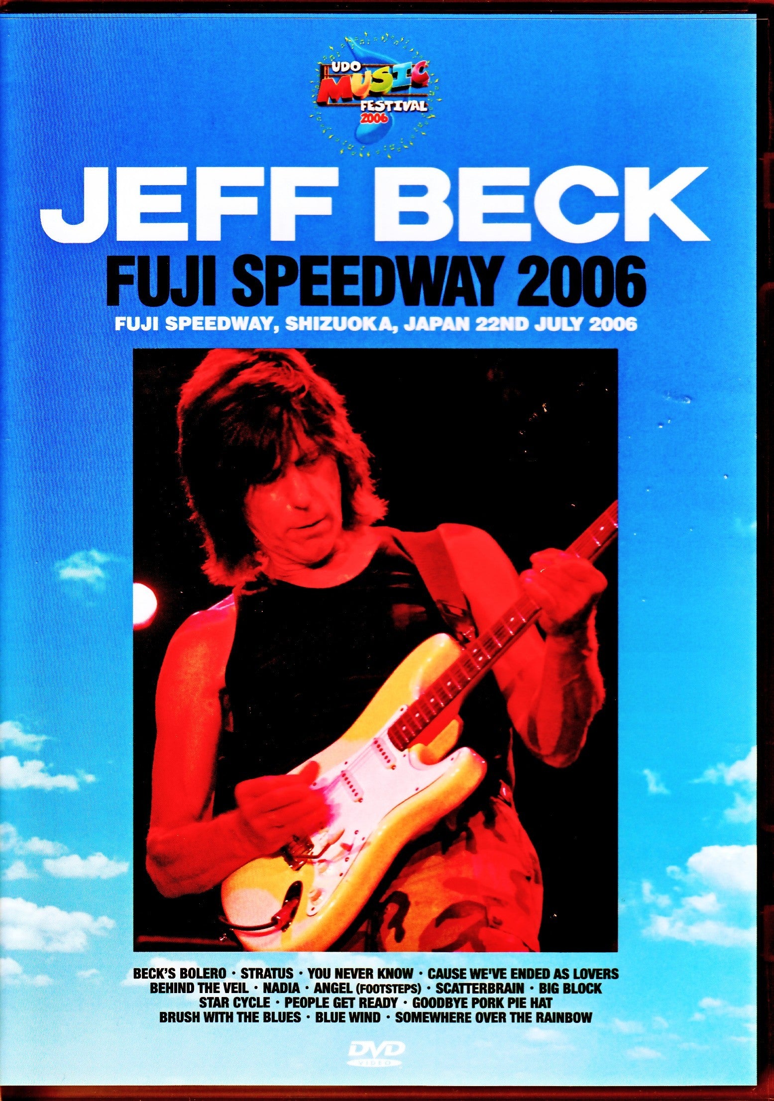 Jeff Beck returned to Japan in 2006 to participate in the "UDO MUSIC FESTIVAL," which left behind a legend in the history of Japanese Western music. Introducing the ultimate multi-camera pro shot. [The ultimate version with the only drawback completely restored] This work includes “July 22, 2006: Fuji Speedway Performance”. This day was a legend that will remain in the history of Japanese Western music. A major music company even put up a sign for this large-scale rock festival that read, ``Reviving the excitement of Woodstock!'' Over the two days, 30 bands/musicians appeared, including some of the biggest names in the rock scene, old and new, such as KISS, SANTANA, Paul Rodgers, THE DOOBIE BROTHERS, ALICE IN CHAINS, and more. . However, when I opened the lid, there was a record failure. Perhaps it was the inaccessible location, the rainy weather, or a mismatch between the lineup and pricing... whatever the cause, the venue was empty. I saw many spectators bringing out plastic seats and chairs to watch, and even the minor young performers' performances had single-digit audience numbers. Paul Stanley of KISS also left behind an unusual legend, saying, ``40,000 people showed up. Hey, don't look around!'' In any case, Jeff also participated in such a legendary festival. I appeared as a semi-finalist on the Mobilita stage on the first day. The scene was filmed using professional shots and broadcast on a certain commercial broadcasting station. This work is the pinnacle version of such multi-camera professional shots. In fact, the quality is impregnable. At our store, we have archived many rock broadcasts with the best masters by domestic recording enthusiasts, and this work is one of them. The screen, which has no noise and no deterioration, is at a level that cannot be explained simply by being broadcast in the 21st century, and is truly overflowing with official-level visual beauty. Of course, the same goes for audio and photography. The camera work that properly understood the idea of the song was wonderful, especially since Jeff is popular in Japan, and the scene where the sun was still high was clear to every corner of the stage. It's a little too big for a four-person group, and you can really feel the scale of the gigantic stage. I have introduced such top-class masters before, but this work is further upgraded. In the previously released version, the digital master provided by the recorder was used as is, but the aspect ratio of the screen was incorrect. It felt so strange that the screen was flattened horizontally and the bass drum became oval. Of course, this work has been corrected to a normal ratio suitable for permanent preservation. You can enjoy the highest image quality in history with a true-to-life view. [Official professional shot of the legendary festival] The show depicted with its visual beauty is also truly wonderful. The theme of this “UDO MUSIC FESTIVAL” was “Summer Festival for Adults,” and it was truly a strange thing to say. In fact, Jeff had just done a Japan tour one year ago in July 2005, and at that time, Jimmy Hall also accompanied the song. On the other hand, in this work, you can listen to plenty of guitar on a completely instrumental stage. The set is a short one for festivals, a style that started in 2005 with only the vocal numbers removed. Let's sort it out here.・TRUTH (1 song): Beck's Bolero ・BLOW BY BLOW (2 songs): Cause We've Ended as Lovers/Scatterbrain ・WIRED (2 songs): Goodbye Pork Pie Hat/Blue Wind ・THERE & BACK (2 songs): You Never Know/Star Cycle・FLASH (1 song): People Get Ready・GUITAR SHOP (2 songs): Behind the Veil/Big Block・WHO ELSE! (2 songs): Angel (footsteps)/Brush With the Blues・YOU HAD IT COMING (1 song): Nadia, EMOTION & COMMOTION (1 song): Somewhere Over the Rainbow, others: Stratus (Billy Cobham)...and so on. Speaking of 2006, the official live album “Live Beck '06” was also released, but you can also see “People Get Ready” which cannot be heard there. Furthermore, the members are different from 2005. After his last visit to Japan, the bassist changed from Pino Palladino to Randy Hope Taylor. Randy is a great talent who is also known for his work with INCOGNITO, synonymous with acid jazz, and you can enjoy his reborn ensemble with official quality. Another highlight of this work is the mood at the scene. As mentioned earlier, this festival is known for its infamous legend, but the audience was... surprisingly normal. Jeff's popularity may have been high, but there were still plenty of customers, so I guess the legend was just an urban legend. That's what it seems like. However, this may be a magic unique to professional shots. If you look closely, you'll notice that the angles of the audience seats are extremely narrow, and similar angles are repeated over and over again. It seems that they have deliberately avoided less popular places and focused their editing on the very front. Here and there, there are also distant shots of the audience seats, where the population density suddenly drops, and we get glimpses of the audience spreading out their seats... There was also a TV commercial that said, ``The lens doesn't lie.'' However, it may be possible to make the lens lie. The festival left behind a strange legend, but Jeff's performance there was the best. This work is a multi-camera professional shot that allows you to enjoy the whole story in the highest official quality. Since it is a legend, I cannot hope for an official release, but it is a wonderful video work that should have been left behind by the official team. ★Recorded in the best version with the correct screen aspect ratio. Fuji Speedway, Shizuoka, Japan 22nd July 2006 PRO-SHOT (62:27) 1. Beck's Bolero 2. Stratus 3. You Never Know 4. Cause We've Ended As Lovers 5. Behind The Veil 6. Nadia 7. Angel ( Footsteps) 8. Scatterbrain 9. Big Block 10. Star Cycle 11. People Get Ready 12. Goodbye Pork Pie Hat 13. Brush With The Blues 14. Blue Wi