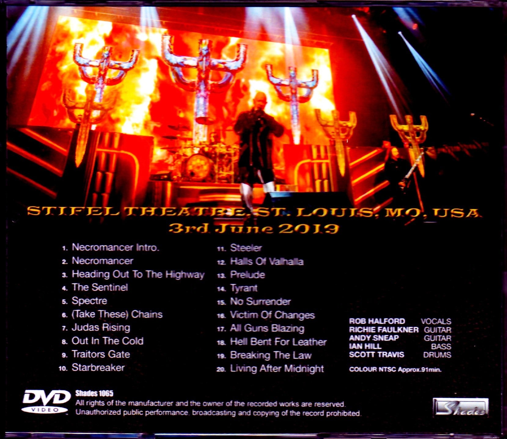 “FIREPOWER WORLD TOUR” is an extremely rare song paradise that is rarely seen in the entire history of JUDAS PRIEST. The best video to witness the final stage of the tour is now available. This work includes “June 3, 2019: St. Louis Performance”. This is the best audience shot. The biggest point of this work is the quality that becomes the tour's masterpiece, but first of all the position of the show. The final leg “North America #3”, which is currently in progress, has produced a series of masterpieces, especially the video version, which was in a state of extinction in the early stages of the tour. Starting with the highly popular "HOLLYWOOD FLORIDA 2019", "AUSTIN 2019 (Shades 1063)" will also be released this week. We will leave the overall picture of the world tour to the explanation of “AUSTIN 2019”, but here we will organize the relationship of the video trilogy from the details of “North America #3”. ・May 3rd “HOLLYWOOD FLORIDA 2019” ・May 4th-15th: 7 performances [May 11th: canceled due to bad weather] ・May 16th-28th: 7 performances ・May 29th “AUSTIN 2019'' ・May 31st + June 1st: 2 performances ・June 3rd: St. Louis performance ←★Here★《June 5th: Rob canceled due to bronchitis》 ・June 8th-29th: 15 performances This is “North America #3” of the final leg of “FIREPOWER WORLD TOUR”. The St. Louis performance of this work was the 19th concert out of a total of 34 performances. This work, taken at such a show, is a superb shot that has the ``super'' rating. What's amazing is the spectacular view and powerful zoom. I was looking down diagonally from the second floor seat to the right of the stage (near Ian Hill), but perhaps because I was in the front row or because the seat was at a steep angle, there was nothing blocking my view. Although the distance is undeniable since it is only on the second floor, what offsets that is the ferocious zoom. This is already intense. At maximum zoom, Rob Halford's bust-up fills the screen, and every glitter and stud on his costume is super clear. I follow the highlights while making use of that much zoom, and when I get close to Richie Faulkner and Andy Sneap, I can even see the sparkling guitar strings reflecting the lights. Furthermore, the camera work is amazing. The player chases the members in such a close-up manner, but the target member is placed in the center of the screen and can be freely swung from side to side, moving smoothly and making it extremely easy to see. Of course, this is due to the camera shake prevention function of the latest equipment (the slight jerkiness when zooming in/out is probably due to automatic processing), but even with that, the precision of the stable holding method is unparalleled. do not have. Of course, the back screen that visualizes the song world with various images is also beautifully captured. “AUSTIN 2019”, which was released at the same time, was a two-video set of distant view and close-up, but this work is a masterpiece video that combines those tastes into one. The show drawn with such quality is the latest version (and probably the final version) of "North America #3", which shocked with a rush of rare songs. In addition to new FIREPOWER songs such as "Necromancer," "Spectre," and "Traitors Gate," there are also rare classics such as "(Take These) Chains," "Starbreaker," "Steeler," "All Guns Blazing," and "Out In The Cold." It has been invested. That scene could be enjoyed at “HOLLYWOOD FLORIDA 2019” on the first day of “North America #3”, but the details were readjusted at the end of the tour. Although it is unfortunate that the extremely rare “Killing Machine” was dropped, there is no way to complain since the masterpiece “Prelude / Tyrant” from “SAD WINGS OF DESTINY” was included in the set instead. In fact, this song became a hot topic on "North America #1", but the set was dropped after that. As I mentioned earlier, I was not blessed with good video footage at the beginning of this tour, and I was unable to listen to it even during the two performances in Japan. You can watch it from your special seats. As per the above schedule, the St. Louis performance of this work was the show just before Rob suffered from bronchitis. Although it is hard to say that the vocals are in the best condition, nothing can replace the thrill of being able to watch "North America #3" filled with extremely rare masterpieces from a special seat. “HOLLYWOOD FLORIDA”, “AUSTIN 2019”, and this work. A masterpiece trilogy that will quench the thirst of metal heads who have been starving for a video version of "FIREPOWER WORLD TOUR" for a long time. Live at Stifel Theatre, St. Louis, MO, USA 3rd June 2019 AMAZING SHOT!!!! 1. Necromancer Intro 2. Necromancer 3. Heading Out to the Highway 4. The Sentinel 5. Specter 6. (Take These) Chains 7 Judas Rising 8. Out in the Cold 9. Traitors Gate 10. Starbreaker 11. Steeler 12. Halls of Valhalla 13. Prelude 14. Tyrant 15. No Surrender 16. Victim of Changes 17. All Guns Blazing 18. Hell Bent for Leather 19. Breaking the Law 20. Living After Midnight Rob Halford - vocals Scott Travis - drums Ian Hill - bass Richie Faulkner - guitars Andy Sneap - guitars COLOR NTSC Approx.91min.