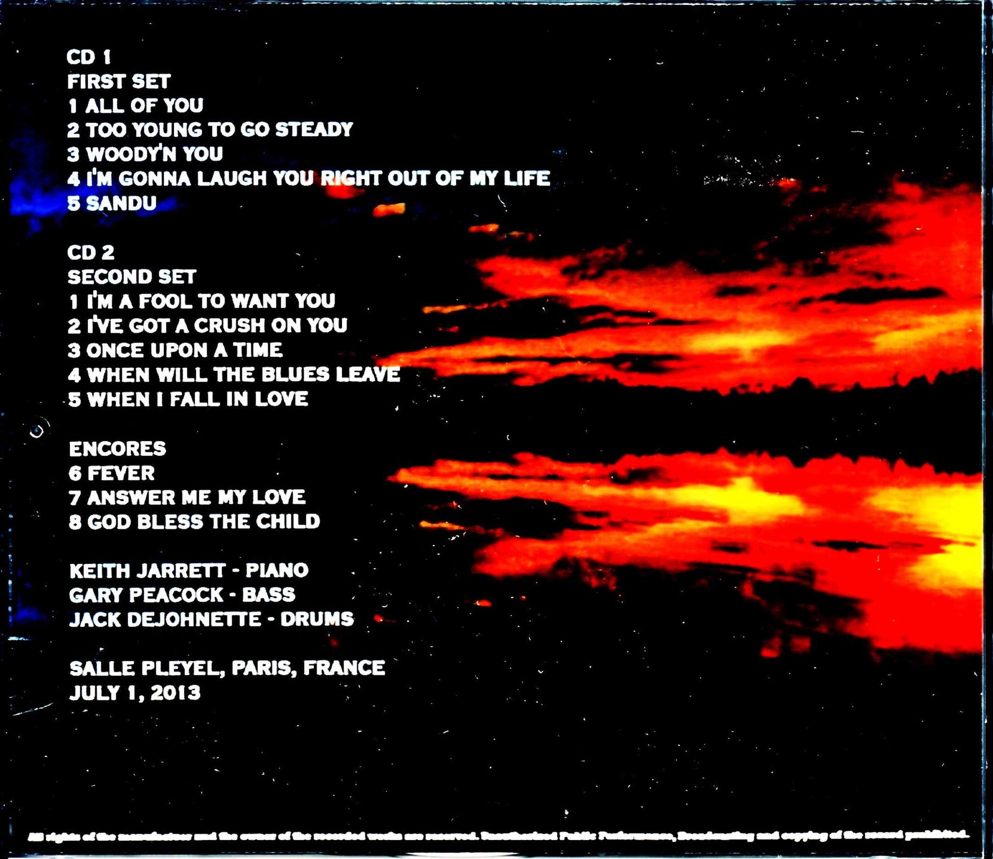 Disc 1 1. All of you 2. Too Young To go Steady 3. Woody'n You 4. I'm Gonna Laugh you Right Out of My Life 5. Sandu Disc 2 1. I'm a Fool to Want You 2. I've Got a Crush on you 3. Once Upon a Time 4. When Will the Blues Leave 5. When I Fall in Love encores 6. Fever 7. Answer Me My Love 8. God Bless the Child Keith Jarrett - Piano Gary Peacock - Bass Jack DeJohnette - Drums