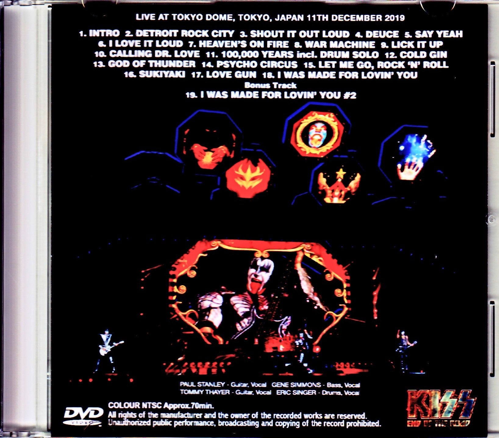 KISS has ended all activities in Japan after completing their annual year-end appearance on the national song program. The best original video that is perfect for those who are suffering from loss at the beginning of the year has been decided to be released. This work was filmed on December 11, 2019: Tokyo Dome performance. This is an audience shot that recorded the last show in Tokyo. We have reported on the last performance in Japan with the masterpiece live albums “TOKYO DOME 2019” and “OSAKA 2019”, but this is the first video. A work that brings back memories not only with sound but also with sight has finally appeared. Before looking at the quality, let's first check the show's position on the Japan schedule at the end of last year, even for record purposes. ・December 8: Xebio Arena Sendai ・December 11: Tokyo Dome ←★This work★ ・December 14: Morioka Takaya Arena ・December 17: Kyocera Dome Osaka ・December 19: Dolphins Arena ・12 March 31st: Performed at the Kohaku Uta Gassen. This work, taken at such a show, is a truly spectacular audience shot. This is the original master for this work that was given to us by the photographer himself, but that person is not just a person. This is the latest work by the person who shot ALCATRAZZ's "DEFINITIVE TOKYO 2019 FINAL NIGHT: THE VIDEO" and Michael Monroe's "TOKYO 2019 1ST NIGHT", which was said to be "the best video of 2019". If you've seen these two films, you've probably already noticed the spectacular scenery with no obstructions, the sense of stability that makes it seem as if the staff were filming, and the camera work that never misses the highlight... It is a piece in which a master who is said to be like a one-camera professional shot recorded the "last KISS" by leaning on his arms. In fact, this work is also wonderful. As expected, it is a huge venue that cannot be compared to ALCATRAZZ or Michael Monroe, so it cannot be denied that it is far away, but the spectacular scenery and wonderful camera work are truly masterpieces. And a zoom that is bold enough to compensate for that distance. He leans closer and attacks so much that Paul and Jean's upper bodies stick out from the screen. Even with that much up, the highlight is still there, and when it comes to the guitar solo, it moves to Tommy Thayer, and the chorus and many textured formations are perfect. If it weren't for the (slight) shake caused by the distance, you'd think it was a screen shot. Well, I was able to take a great photo so far at Tokyo Dome, which is difficult to photograph. Of course, the visual beauty depicts KISS's historic last performance in Tokyo. I have to be honest here. The biggest and only drawback of this work is that it is not fully recorded. Filming went smoothly from the start of the performance, but it ended once they reached "Cold Gin". After that, about 5 songs were not shot, and although it resumed from the middle of "I Was Made For Lovin' You", it ended with the appearance of Paul moving in a gondola. It's a shame that you can't see the highlight part of the show. In order to heal such frustration, "I Was Made For Lovin' You" was additionally recorded from a different angle. It's a distant view shot that can't be compared to the main story, but that's why you can clearly see the huge feeling of Tokyo Dome. Of course, you can clearly witness the spectacle of poles traversing the huge space on gondolas. Until the very end, KISS was KISS, a professional among professionals. This is a video work that allows you to enjoy the final heroic performance and the huge entertainment with a spectacular view. It is regrettable that ``Return'' is not a complete recording, but it still lasts about 70 minutes at the site of the historic show. It's enough to turn the memories that have already become hazy into solid ones. This is a piece we need right now as we struggle with KISS loss. Live at Tokyo Dome, Tokyo, Japan 11th December 2019 AMAZING SHOT(from Original Masters) 1. Intro 2. Detroit Rock City 3. Shout It Out Loud 4. Deuce 5. Say Yeah 6. I Love It Loud 7. Heaven's On Fire 8. War Machine 9. Lick It Up 10. Calling Dr. Love 11. 100,000 Years incl. Drum Solo 12. Cold Gin 13. I Was Made For Lovin' You Bonus Track 14. I Was Made For Lovin' You #2 COLOUR NTSC Approx.70min.