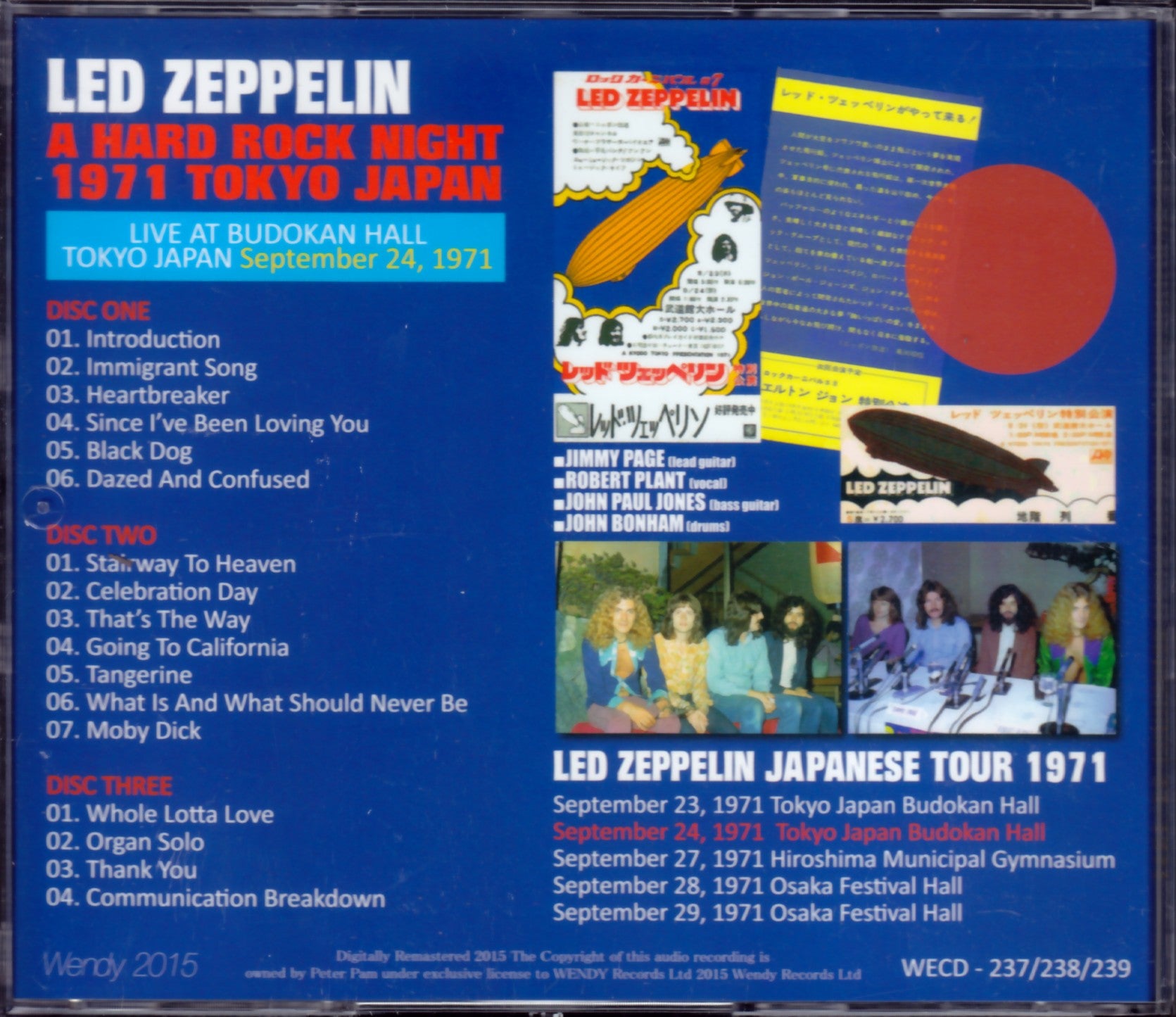 Led Zeppelin/Tokyo,Japan 9.24.1971