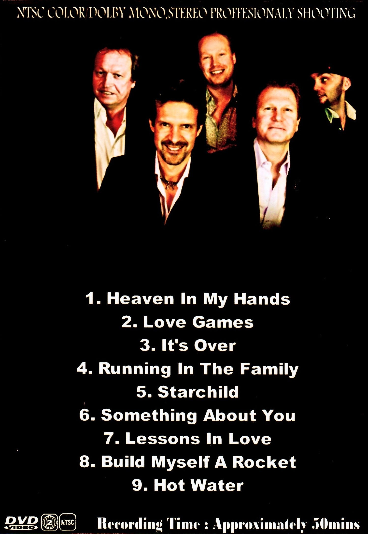 1. Heaven In My Hands 2. Love Games 3. It's Over 4. Running In The Family 5. Starchild 6. Something About You 7. Lessons In Love 8. Build Myself A Rocket 9. Hot Water DVD Format: NTSC Source: Professional Shot (Multi Camera) Video Quality: Rating: 8.0 Menus: No Chapter Selection: Skip Every 5 Min. Widescreen: Yes HD: Yes Total Running Time: 50 Min.