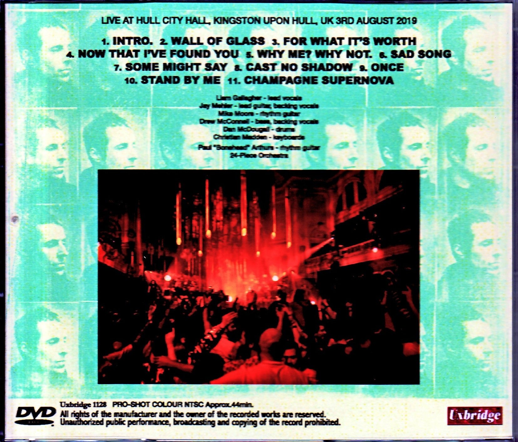 Introducing the ultimate professional shot of the latest acoustic concert. This film was filmed on August 3, 2019 in Kingston upon Hull. This is a multi-camera professional shot taken when he appeared on the popular program "MTV UNPLUGGED". Currently, his new work ``WHY ME? WHY NOT.'' is No. 1 in the UK, and the documentary film ``AS IT WAS'' will be released in Japan. Liam Gallagher has also established himself as a solo artist. First of all, let's check the show's position from the recent situation. ●2019/June 5th-July 28th: Europe #1 (15 performances)/August 3rd-September 21st: Europe #2 (6 performances)←★Here★《September 20th “WHY ME? WHY NOT.” released》 October 9th-24th: North America (5 performances) November 11th-28th: Europe #3 (13 performances) December 6th-20th: Oceania (7 performances) Performances) ● February 1st-21st, 2020: Europe #4 (14 performances) This is the schedule announced so far. Speaking of Liam, the recently released masterpiece pro shot “GLASTONBURY 2019 (Uxbridge 1060)” is also very popular, but from that point on, the number of performances in each leg has increased, and an Oceania tour has also been announced. Under such circumstances, "Europe #2" is more of a promotion held before and after the release of the album than a tour. This work was also its first show (broadcast was a week later on “September 27th”). This work is so beautiful that it takes your breath away. This show was broadcast and distributed in several ways, but this work is the “Channel 5 HD” broadcast version, which is said to have the highest quality among them. In fact, if the image and sound quality are perfect, then the camera work and mix are impeccable...nope. That doesn't convey the quality of this work at all. ``Excellent'', ``superlative'', ``completely official''...no matter how you describe it, it's comparable, and words like these are not enough. It is natural that it is perfect because it is “MTV UNPLUGGED” in the world, but it is still beautiful. The scene, Hull City Hall, is a baroque building with a history of over 100 years, and its interior is decorated with elegant brown lighting, and is depicted using precisely calculated cuts. Each moment is so well cut that it could be used as album artwork, and it continues to move slowly and steadily. There was a gap of one week between the show and the main broadcast, but it is easy to imagine that the details were calculated and directed during that time. It's possible to officially release it as it is...or should I say so much work on a video that hasn't even been released yet? No matter how successful Liam is, it's an amazing time. If the visual beauty is special, then the show is also special. Even if you say "UNPLUGGED" in one word, it varies from simple playing to orchestral co-starring, but this work is close to the latter. In addition to the usual band, the stage was filled with a female chorus and countless strings, making it extremely gorgeous. From the OASIS era to the new number ``WHY ME? WHY NOT.'', he will play a group of masterpieces thickly and solemnly. What are the famous songs... ●(WHAT'S THE STORY) MORNING GLORY? (3 songs)・Some Might Say, Cast No Shadow, Champagne Supernova●AS YOU WERE (2 songs)・Wall Of Glass, For What It's Worth●WHY ME? WHY NOT. (3 songs)・Now That I've Found You, Why Me? Why Not., Once ●Other OASIS numbers (2 songs)・Sad Song (DEFINITELY MAYBE), Stand By Me (BE HERE NOW) And it looks like this. There are only three songs that overlap with the extremely popular "GLASTONBURY 2019"... Not only the new songs "Now That I've Found You" and "Why Me? Why Not.", which have only been performed once that day, but also "Once" and "Sad Song" and "Stand By Me" from the OASIS era are solos. The world premiere. In particular, "Sad Song" and "Cast No Shadow" are rare numbers that were only played a few times during the OASIS era. Of course, the two songs from the previous work and “Champagne Supernova” will also be played, but you can enjoy them all in gorgeous versions only for this day. In 1996, Liam Gallagher appeared as a solo on "MTV UNPLUGGED," which caused a lot of trouble. The contents were by far the most beautiful and luxurious live work, even including the official solo work. This is a rare video work that should be talked about on the level of art. This is a piece that is different from the ``official grade'' songs that are out there. Live at Hull City Hall, Kingston upon Hull, UK 3rd August 2019 PRO-SHOT 1. Intro 2. Wall Of Glass 3. For What It's Worth 4. Now That I've Found You 5. Why Me? Why Not. 6. Sad Song 7. Some Might Say 8. Cast No Shadow 9. Once 10. Stand By Me 11. Champagne Supernova PRO-SHOT COLOR NTSC Approx.44min.