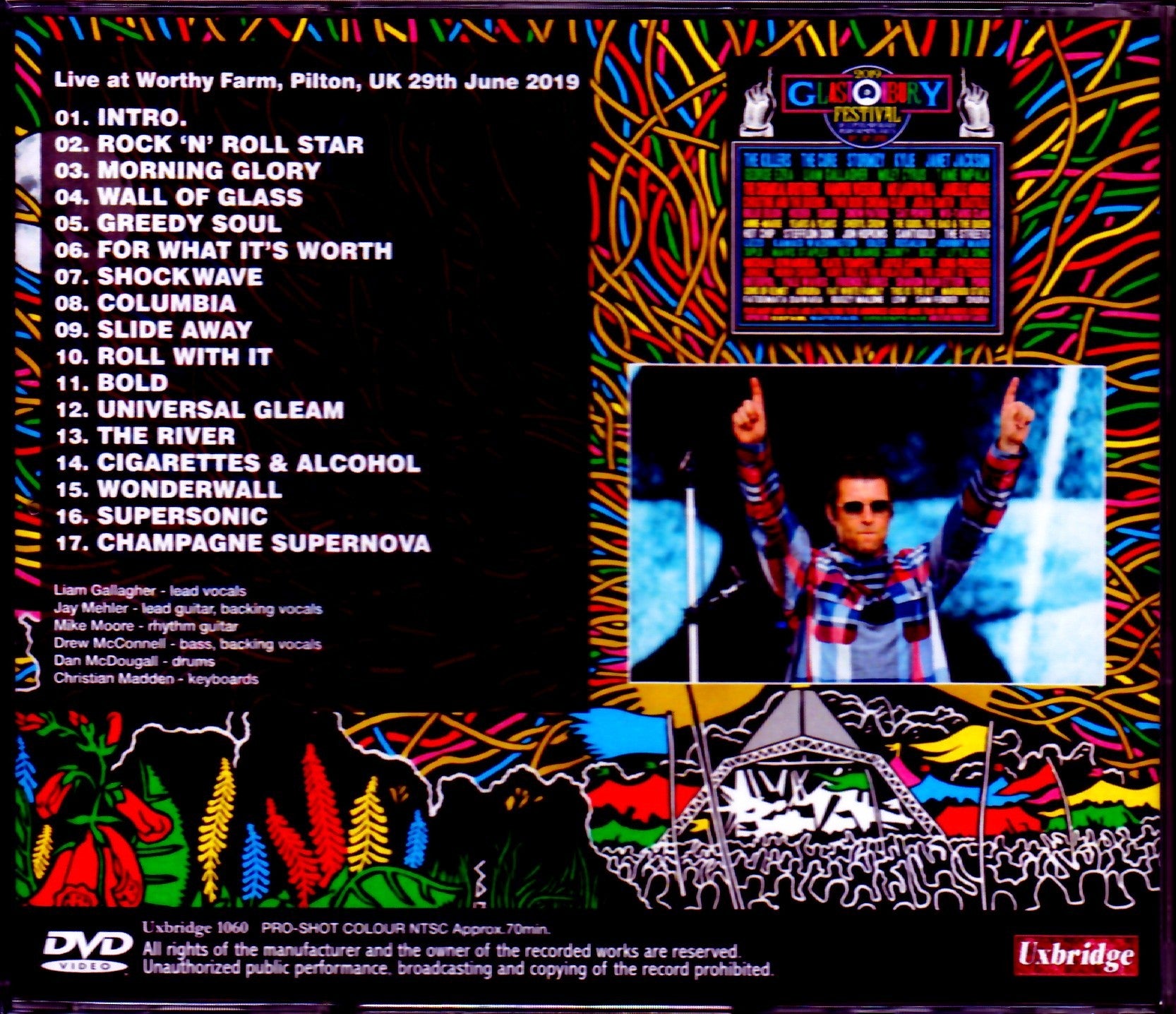 Liam Gallagher's new album ``WHY ME? WHY NOT.'', which follows his hugely successful solo debut, is about to be released. The latest and best video is now available. This work includes “June 29, 2019 Pilton Performance”. This is a multi-camera professional shot taken when he appeared at the traditional British music festival "Glastonbury Festival". His highly anticipated second album ``WHY ME? WHY NOT.'' is scheduled to be released this fall, but Liam has already resumed live activities. First of all, let's check the show's position from the tour schedule that shows his current situation. ●2019・June 5th - July 28th: Europe #1 (12 performances) ←★Here★・August 24th + September 1st: Europe #2 (2 performances)《September 20th “WHY ME ?WHY NOT.'' Release》 October 9th-24th: North America (5 performances) November 11th-28th: Europe #3 (11 performances) ●2020 February 1st-21st: Europe #4 (13 performances) This is the schedule announced so far. The tour began on June 5th, the day the single "Shockwave" was released, and dates for February next year have also begun to be announced. The Glastonbury Festival performance of this work was the 7th concert of the very early “Europe #1”. This work, which records such a show, is a completely official professional shot with no questions asked. “Glastonbury Festival” is a famous festival that is famous all over the world, and the company that will be filming and distributing it is BBC, a prestigious company that has been working with rock. If the shooting and mixing are perfect, the camera work is also full of mood. It can be officially released as it is... No, if it is released, it is a super-excellent video that will be loved by future generations as a masterpiece that symbolizes 2019. The show is so beautiful that you just want to say, "Please watch it!" and it's amazing. The composition that starts with “Rock 'n' Roll Star” and folds into “Morning Glory,” “Wall Of Glass,” and “Greedy Soul” is reminiscent of the Japanese performance, but what is completely different is the sight. There are outdoor festivals where the national flags of various countries wave, but even more so is the brightness of the day. Liam, who sings in front of a huge crowd, is projected brightly without relying on lighting, and every corner of the stage can be clearly seen. And the show itself becomes fresh from the new song “Shockwave”. Some members of the audience were already chanting along, even though it had only been released for a short time, and from there, a series of OASIS's famous songs began to play, and the venue heated up even more. What's more, the extremely rare "Columbia" and "Roll With It" are also played, so it's irresistible. Both have rarely been played at BEADY EYE or Noel's shows, and this year is also Liam's first solo performance. This is almost the first revival since OASIS. The finishing blow is the new song “The River”! Actually, the single "The River" was released two days before "Glastonbury Festival", and this performance was the world premiere. As of now, the only new songs from "WHY ME? WHY NOT." that have been released are "Shockwave" and "The River," and you can already experience their live performance with a completely official professional shot. . Furthermore, there is another way to enjoy this work. It's a sibling showdown with his older brother Noel Gallagher. In fact, Noel's latest pro shot "ISLE OF WIGHT 2019 (Uxbridge 1057)" will be released at the same time this week. The Isle of Wight Festival, where Noel performed, was held two weeks before this film, and is also a very famous festival representing the UK. This is a completely official professional shot, and you can compare the two brothers' home country festivals where they appeared as solo artists at almost the same time. In particular, “Wonderwall” is played by both, and you can enjoy the deeply moving image. "2019's latest completely official professional shot"...that's all I can say. This is a record where you can witness the return of the rare "Columbia" and "Roll With It" as well as the new songs "Shockwave" and "The River," and your anticipation for the long-awaited "WHY ME? WHY NOT." will turn into a craving. And by combining it with Noel's "ISLE OF WIGHT 2019", you can enjoy the brothers' "now". Multi-camera professional shots that can be enjoyed in any way. Live at Worthy Farm, Pilton, UK 29th June 2019 PRO-SHOT 1. Intro 2. Rock 'n' Roll Star 3. Morning Glory 4. Wall Of Glass 5. Greedy Soul 6. For What It's Worth 7. Shockwave 8. Columbia 9. Slide Away 10. Roll With It 11. Bold 12. Universal Gleam 13. The River 14. Cigarettes & Alcohol 15. Wonderwall 16. Supersonic 17. Champagne Supernova PRO-SHOT COLOR NTSC Approx.70min.