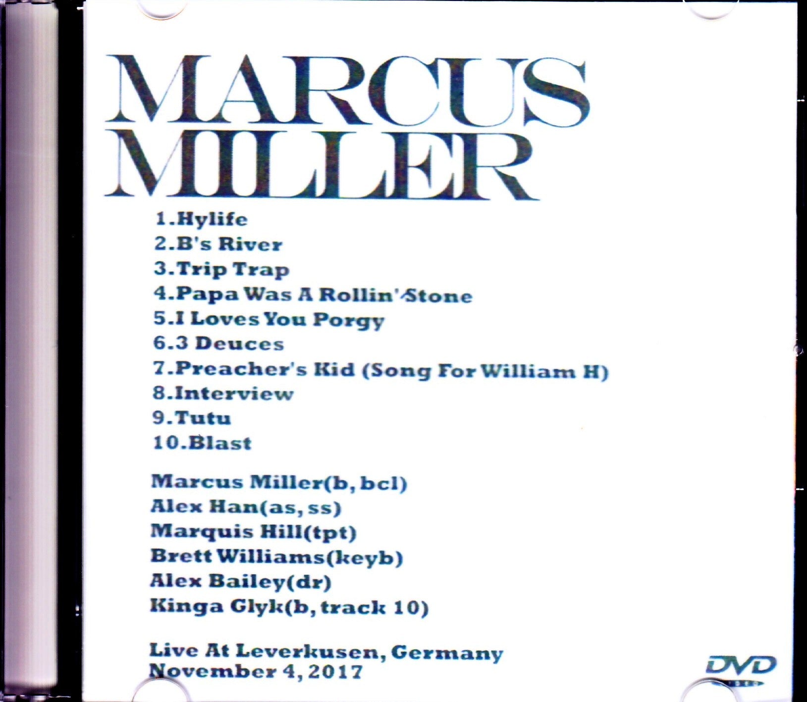 Along with Jaco Pastorius, he was an electric bass player who participated in Miles Davis' projects and was an important right-hand man of Miles in the late 1980s, and continued to create creative works while preserving jazz fusion even after Miles' death.・We have recorded high-quality professional shots of his 2017 live performance in Germany, where he has established himself as an arranger. The recording time will be 90 minutes. Our guest is popular female bassist Kinga Glyk. Live at Leverkusen, Germany 11/04/2017 1.Hylife 2.B's River 3.Trip Trap 4.Papa Was A Rollin' Stone 5.I Loves You Porgy 6.3 Deuces 7.Preacher's Kid (Song For William H) 8 .Interview 9.Tutu 10.Blast(w/Kinga Glyk) Marcus Miller (b,bcl) Alex Han (as,ss) Marquis Hill (tpt) Brett Williams (key) Alex Bailey (dr) Kinga Glyk (b,Track. 10)