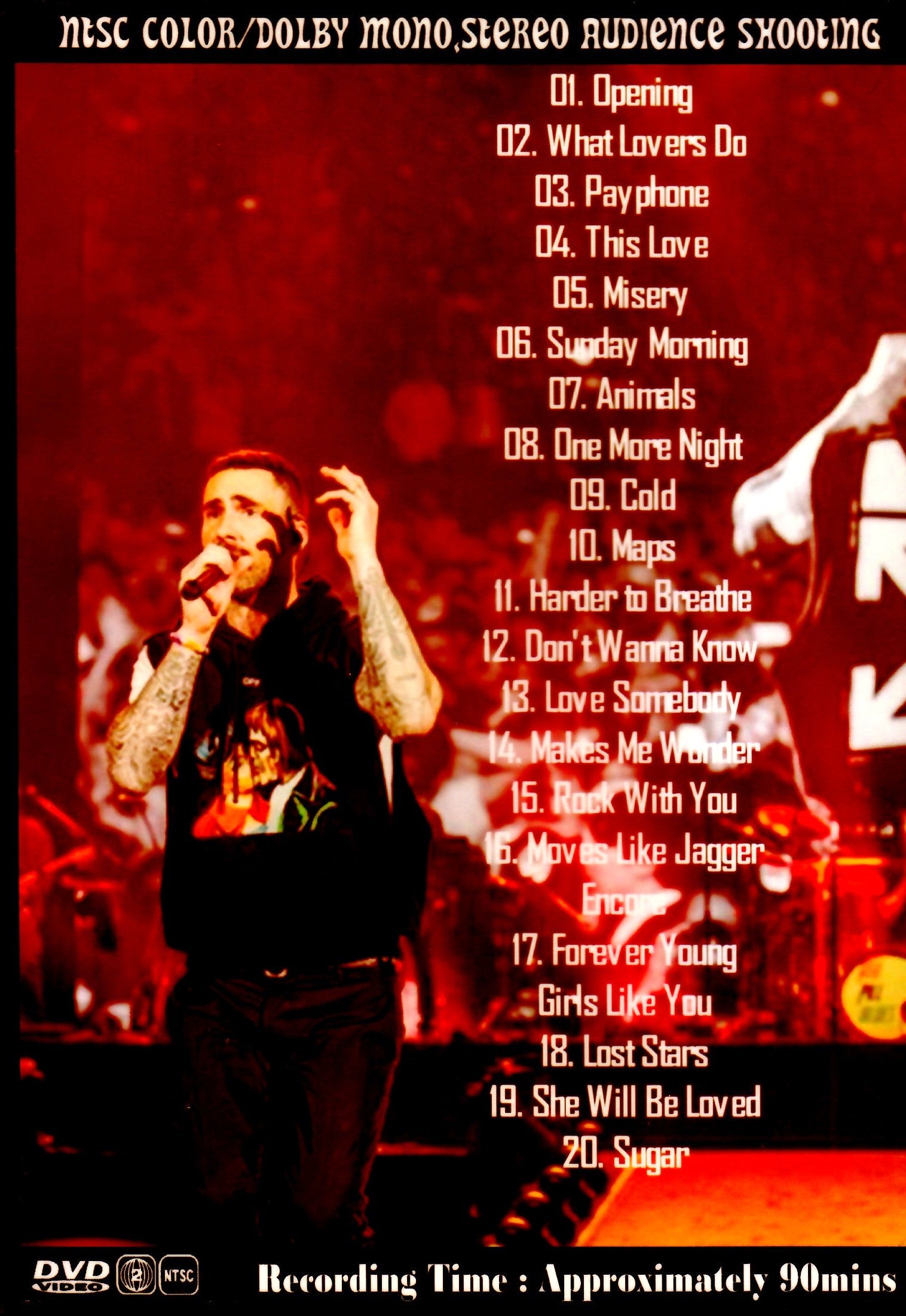 01. Opening 02. What Lovers Do 03. Payphone 04. This Love 05. Misery 06. Sunday Morning 07. Animals 08. One More Night 09. Cold 10. Maps 11. Harder to Breathe 12. Don't Wanna Know 13. Love Somebody 14. Makes Me Wonder 15. Rock With You 16. Moves Like Jagger Encore: 17. Forever Young / Girls Like You 18. Lost Stars 19. She Will Be Loved 20. Sugar