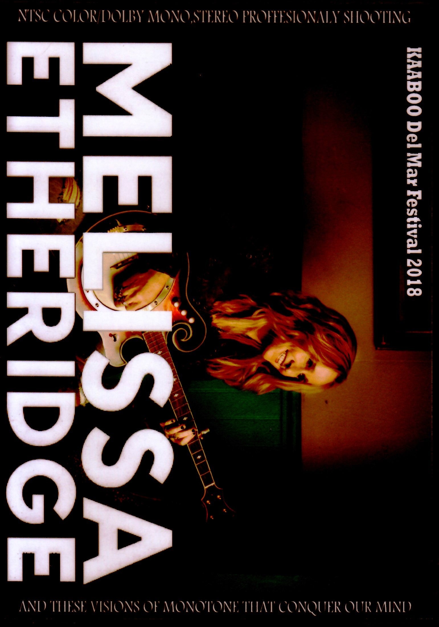 ``Ain't It Heavy'' from ``Never Enough'' released in 1992 became a huge hit, and the following year, Melissa Etheridge won her first Grammy award in the ``Best Female Rock Vocalist'' category. We have professional shots of the enthusiastic performance at the large-scale music festival "KAABOO" held in Del Mar, where big-name artists gather together and perform enthusiastically on an outdoor stage. The vocals are powerful. I get the impression that they are used to live shows. It includes the second single, I'm the Only One, which reached number 8 on the US chart, and I Want To Come Over, which entered the top 10 of the US album chart. The recording time is 80 minutes with menu chapter specifications. Live At KAABOO Del Mar Festival 2018 DVD Your Little Secret If I wanted to Let Me Go I want to come over Ruins Chrome Plated heart Come To My Window Bring Me Some Water selfie/melfie I'm The Only One Like The Way I do DVD Format: NTSC Source: Pro-Shot (Multi Camera) Video Quality: Rating: 9.0 Menus: Yes Chapter Selection: Yes Widescreen: Yes HD: Yes Total Running Time: 80 Min.