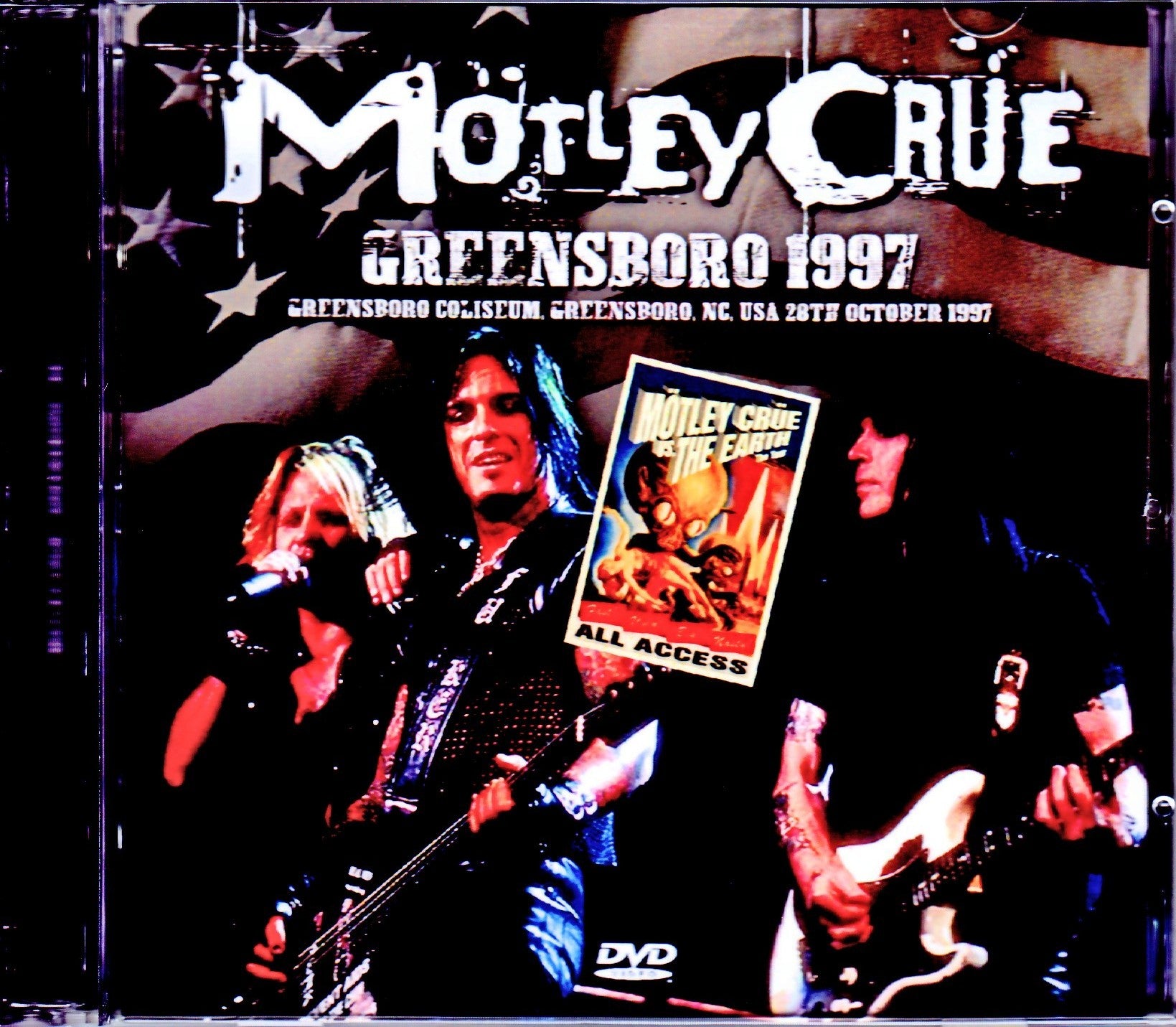 MOTLEY CRUE in 1997, the original four members reunited. A superb video showing the scene of the show where the incident occurred is now available. This work was filmed at the Greensboro performance on October 28, 1997. This is a superb audience shot that allows you to fully experience the first act of “GENERATION SWINE TOUR”. Although we were able to come to Japan on this tour, let's check the show's position from the schedule at the time, including that. [January 27: Announcement of return at AMERICAN MUSIC AWARDS] April 5: Appearance at LIVESTOCK FESTIVAL VII June 10-24: North America #1 (10 performances) [“GENERATION SWINE” released on June 24]・June 28th: ROSKILDE FESTIVAL ・August 16th + 17th: Japan (2 performances) ・September 13th: Atlantic City performance ・October 10th - December 11th; North America #2 (43 performances) ←★ Here★ [Superb view & super quality full video] This is MOTLEY CRUE in 1997. Overseas, they only performed at Denmark's "ROSKILDE FESTIVAL" and three performances in Japan, other than that their main battleground was North America. The Greensboro performance of this work was the 13th concert of “North America #2” which was the main leg. This work, which records such a show, is truly a superb shot of the finest scenery. Anyway, the view is amazing. The photo was taken from the rear stand seats slightly to the left of the stage, with no obstructions. It is a sample video of a spectacular view where only the stage occupies the view while looking down on the audience in the arena seats. If you pull it all the way, the erotic images projected on the huge screen will fit in perfectly, and the zoom that boldly attacks from there will also be intense. And the image quality. Super vivid, super clear, and super beautiful. Since it was made in 1997, I believe it was a video shoot, but no matter how you look at it, it just looks like a modern digital camera. In the close-up, Vince's upper body fills the screen, but you can clearly see the wrinkles in his silver-colored costume and every single strand of his blonde hair. Even the most distant Tommy Lee can clearly see the muscles in his upper arms. The clear sound that matches the spectacular view is also amazing. Although it cannot be said that the sense of distance is zero, because there is no obstruction, the core that reaches straight is like a laser beam, and the details are transmitted vividly as a result. However, from the opening scene to the first song, "Find Myself," the story is a little different. It's a spectacular angle very similar to the main story, but there's no zoom and the audio is a bit loud. The sound suddenly improves during the second song, "Girls, Girls, Girls," so perhaps the missing scenes were supplemented with other footage. In any case, please be careful not to jump to the conclusion that "this is what it is" at the start. What is depicted with such visual beauty is the greatest hits of the 90s with a hint of heaviness. Let's organize the contents of the set here. Classics (12 songs)・TOO FAST FOR LOVE: Live Wire・SHOUT AT THE DEVIL: Shout at the Devil/Looks That Kill/Helter Skelter・THEATRE OF PAIN: Home Sweet Home・GIRLS GIRLS GIRLS: Girls, Girls, Girls/Wild Side・DR. FEELGOOD: Don't Go Away Mad (Just Go Away)/Dr. Feelgood/Same Ol' Situation (S.O.S.)/Kickstart My Heart・DECADE OF DECADENCE: Primal Scream GENERATION SWINE (3 songs)・Find Myself/ Flush/Generation Swine...and it looks like this. While focusing on the golden hit parade, it is a balance that includes only three ``GENERATION SWINE'' numbers. After that, the “GENERATION SWINE” song was occasionally played, but “Find Myself”, “Flush”, and “Generation Swine” are all valuable songs only for this tour. Also, that's not the only thing that gives off a 1997 feel. For example, Tommy's drum solo is the highlight of the show. The kit doesn't move around, probably reflecting the serious and dark times, but that doesn't mean it's plain. Nuclear tests and African ethnic rituals are projected on a huge screen, creating a bizarre atmosphere. Then, at the sound of the sound, an astronaut appeared. They perform an illusion that erases Tommy along with the drum kit. Moreover, when the aviator removes the helmet after erasing the drum, it turns out to be Tommy himself! Even in an era where spinning drum kits can become ridiculous, we don't forget entertainment. You can witness his sense of style and his talent as an entertainer from a spectacular view. [Unexpected reason for super quality revealed through trouble] Another must-see is the trouble after "Home Sweet Home." I don't know the details, but Nicky grabbed the microphone and got furious at the security. “Fuckin’ nigger!!!” he yells. The security guard at the public execution is also shown on zoom, and while he is making some retorts, other security guards pause. They are transported away from the audience, who are on the band's side. The uproar resembled a pro-wrestling brawl, but it actually turned into an uproar that was even covered on ABC and MTV news. This work also includes three news programs as a bonus. What is surprising here is that the footage used as the news footage is from this work. Nowadays, it is not uncommon for footage filmed by viewers to be shown on TV, but this film was released in 1997. Although it is impossible to say for certain, this work may have been professionally shot by the staff of either the broadcasting station or the venue. It's a reasonable, high-quality, and spectacular view... 23 years after this reorganization, the four members will return to the road in the summer of 2020. I won't go into the twists and turns here, but this work is the best medicine for the "now" as we wait for their return. A masterpiece video that allows you to fully experience the scene filled with emotion of "Those four people are back!" from a special seat. Greensboro Coliseum, Greensboro, NC, USA 28th October 1997 AMAZING SHOT!!!