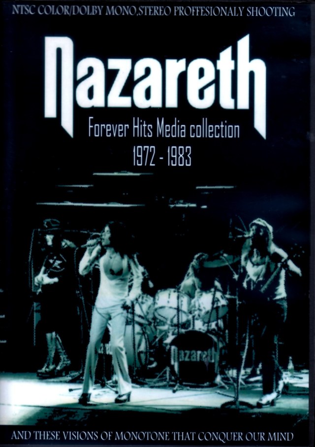 This DVD contains the historical activities of Nazareth, a British rock group that contributed to the establishment of hard rock and heavy metal, boasting a long history of activity of about 50 years. The band has attracted attention since vocalist Dan McFerty announced his retirement from music due to a lung disease that made it difficult for him to continue working as a musician. The band's future is not clear, but it is a shame to think that we will no longer be able to hear Dan's unique hoarse voice and his appealing singing voice. The recording time is 170 minutes, with menu capture specifications. Forever Hits Media collection 1972 - 1983 Be my baby Is that what I get for loving you Silhouettes Be my baby Is that what I get for loving you Be my baby 2x All shook up Born to be together Be my baby 2x Shout You baby Be my baby Walking in the rain Be my baby Say goodbye to Hollywood Darlin' Be my baby Walking in the rain Medley You and me go way back Take me home tonight (with Eddie Money) Who can sleep music I can hear Be my baby 3x The best part of breaking up Be my baby Rocking around the Christmas tree Sleigh ride Don't worry baby I can hear music Be my baby DVD Format: NTSC Source: Professional Shot (Multi Camera) Video Quality: Rating: 8.0 Menus: Yes Chapter Selection: Yes Widescreen: No HD: No Total Running Time: 173 Min.