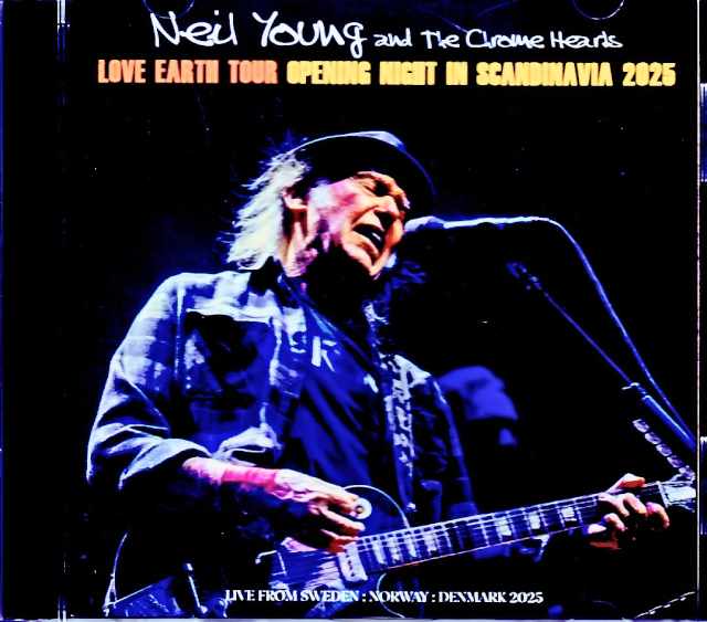 The 2025 Chrome Hearts "LOVE EARTH" world tour kicked off in Scandinavia, and this complete recording of the June 18th performance in Rattvik, Sweden, was released via a digital audience master released by Taper. While most of the band's members are from the now-defunct Promise of Real, the addition of Muscle Shoals renowned musician Spooner Oldham, a close friend of Neil's, created a new sound. As with the previous year's North American tour, the setlist rotated daily, including many rare tracks not performed live for many years. Four tracks not performed on this day were also included as bonus tracks. Neil continued his boycott at Glastonbury Festival in the UK, where he later lifted his boycott, and announced a North American tour in August. This is a must-listen for fans, showcasing his ever-growing talent. DISC 1 : 1. Sugar Mountain/2. Be the Rain/3. When You Dance, I Can Really Love/4. Cinnamon Girl/5. Fuckin' Up/6. Hey Hey, My My (Into The Black)/7. The Needle and the Damage Done/8. Harvest Moon/9. Looking Forward/10. Sun Green DISC 2 : 1. Love and Only Love/2. Like a Hurricane/3. Name of Love/4. Old Man/5. Rockin' in the Free World at Dalhalla, Rattvik, Sweden 18th June 2025 6. Heart of Gold/7. Cortez the Killer at Bergenhus Festning, Bergen, Norway 20th June 2025 8. Comes a Time/9. Down by the River at Tiøren, Copenhagen, Denmark 22nd June 2025 Neil Young - Vocal, Guitar / Micah Nelson (Particle Kid) - Guitar, vocals / Spooner Oldham – Keyboards / Corey Mccormick - Bass, vocals: / Anthony Lo Gerfo - Drums