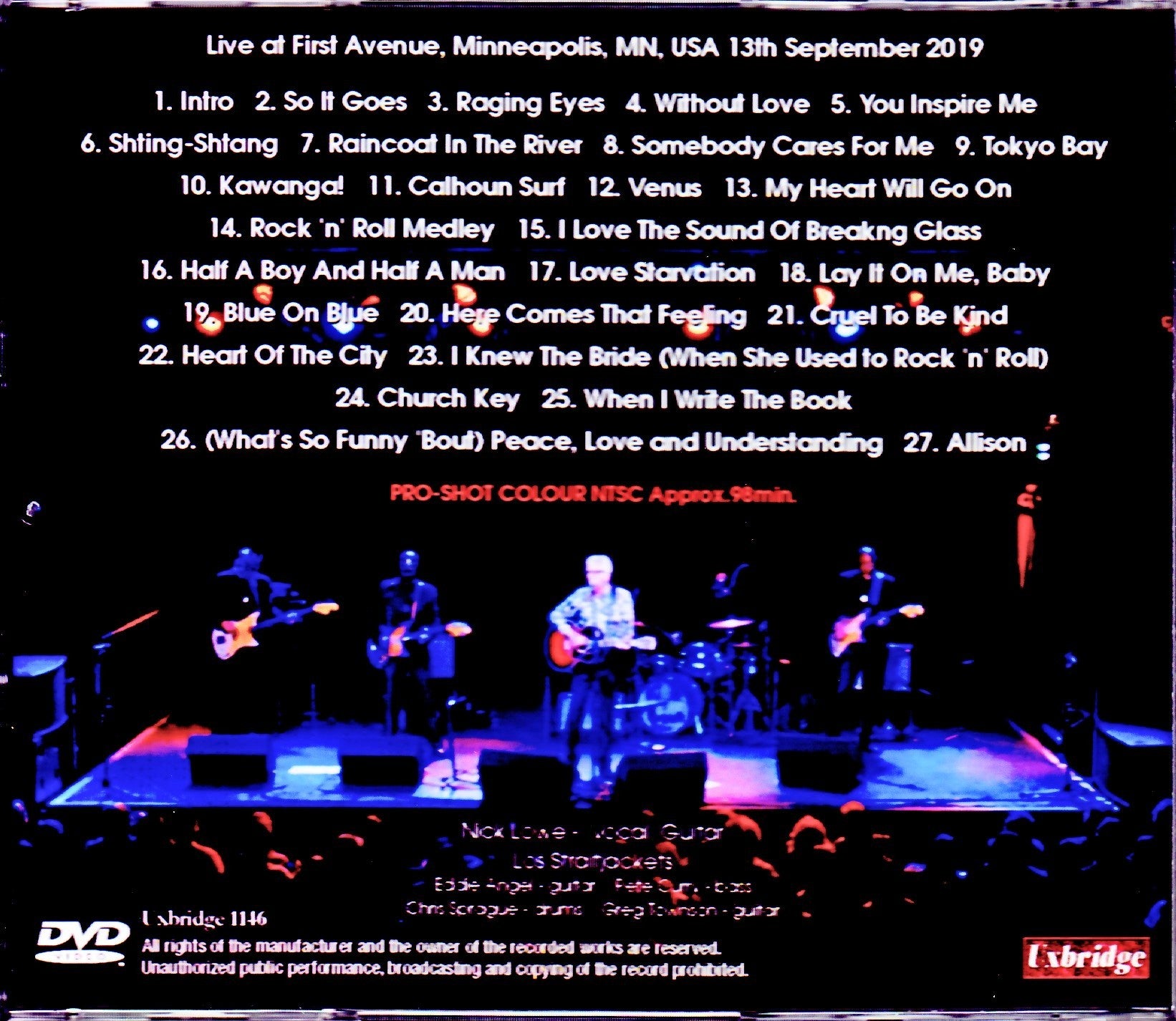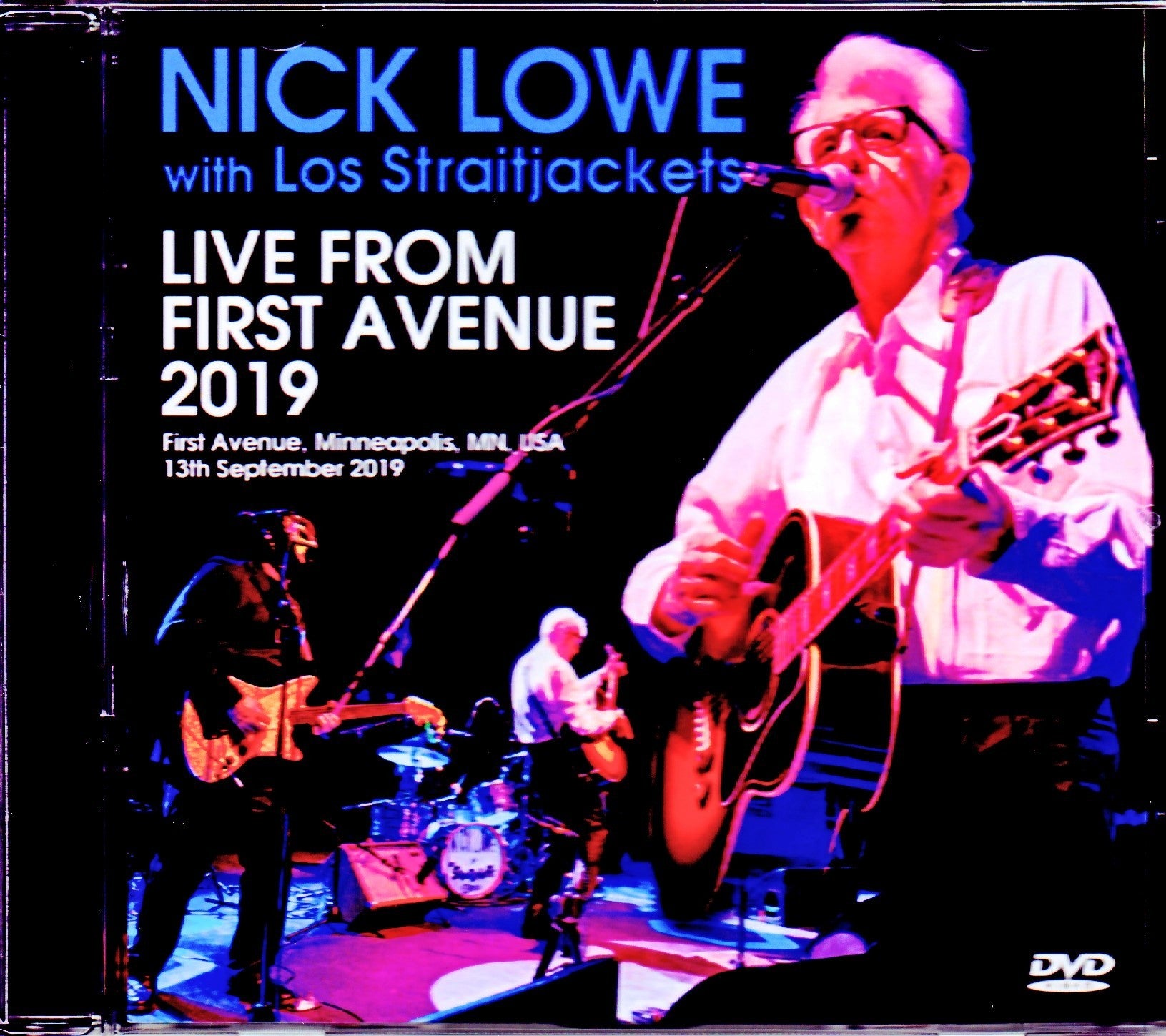 It is still fresh in my memory that Nick Lowe came to Japan alone in August and gave a wonderful live performance. “TOKYO 2019” was an album filled with tears of mania that documented the heartwarming stage at that time. It was a sing-along show that Lowe, who usually performs with a band, was able to perform only in Japan. However, under normal circumstances, he would actively perform live with a backing band in the United States, and following on from the previous year, he would release a new EP (LOVE seems to like this format in recent years), ``LOVE STARVATION.'' I was on stage to promote it. Their activities began in the spring, but they toured the United States with the band again in September. Moreover, the live performance in Minneapolis, which took place exactly one month after the Japan performance, was streamed on YouTube. The quality of the image is crystal clear. It's at a level where it could be released as a normal live DVD or Blu-ray. Backing them up is Los Straitjackets, a literal masked band (lol) who take to the stage wearing wrestler masks. In recent years, they have not only completely become LOW's backing band, but they have also released a collection of LOW covers, which is unique to an instrumental band, and have continued to perform live this year with an unwavering relationship. Just because it's the latest live video captured with a perfect professional shot, it will attract attention from enthusiasts all over the world. Since joining the Straight Jackets, Lowe has been leaning towards the oldies sound of the early 1960s, and the performances heard here are also full of that taste. His repertoire is proof of this, such as his cover of Ricky Nelson's "Raincoat of Love," which is included in his latest EP, and the arrangements of other songs are arranged in a vintage pop sound reminiscent of Roy Orbison. has been done. ``Half a Boy and Half a Man'', which originally had an oldies-like tone, is finally showing its true feel. This pop and sweet sound is full of familiarity that will capture the hearts of all music fans. The August performance in Japan was performed by Rowe alone, so the setlist was completely different from this time, and it had an acoustic, country & western atmosphere, but the band sound with the Straight Jackets was also really appealing. Target. In addition, in the middle of the live performance, a performance part only for Straight Jackets will begin, which serves as a break time for LOW and a time to add flair to the band. The surf instrumental that they play here that is straight from Dick Dale is really fun. Their signature repertoire, Celine Dion's ``My Heart Will Go On'' and surf instrumental versions of Shocking Blue's ``Venus'' are also worth seeing. As expected from a battle-hardened masked band. The second half of the show, which began with Rowe returning after changing clothes, was full of famous songs. The famous song "Cruel To Be Kind" had a great singing version at the Japanese performance, but it is still a typical repertoire that would be better performed by a band. The ultimate song is “Heart of the City.” The arrangement is as if it were performed by the Kinks (the guitar solo is from "You Really Got Me"), and what's more, the ending features the drummer playing a short solo in the style of the Beatles' "The End," which really made fans cry. . It was a hilarious live version, and it was understandable that after the performance, Lowe introduced him as "Ringo!" In this way, it is a masterpiece live video where you can enjoy the live sound of LOW and Straight Jackets, which is completely different from the performance in Japan in August, and is a gem that should be enjoyed along with "TOKYO 2019". I think it's rare in Lowe's career that the style of live performance changes so much in one month. Anyway, the picture quality and sound quality are absolutely the best, and we want to recommend the latest live video to all rock fans! Live at First Avenue, Minneapolis, MN, USA 13th September 2019 PRO-SHOT (98:21) 1. Intro 2. So It Goes 3. Raging Eyes 4. Without Love 5. You Inspire Me 6. Shting-Shtang 7. Raincoat In The River 8. Somebody Cares For Me 9. Tokyo Bay 10. Kawanga! 11. Calhoun Surf 12. Venus 13. My Heart Will Go On 14. Rock 'n' Roll Medley 15. I Love The Sound Oof Breakng Glass 16. Half A Boy And Half A Man 17. Love Starvation 18. Lay It On Me, Baby 19. Blue On Blue 20. Here Comes That Feeling 21. Cruel To Be Kind 22. Heart Of The City 23. I Knew The Bride (When She Used to Rock 'n' Roll) 24. Church Key 25. When I Write The Book 26. (What's So Funny 'Bout) Peace, Love and Understanding 27. Allison PRO-SHOT COLOR NTSC Approx.98min.