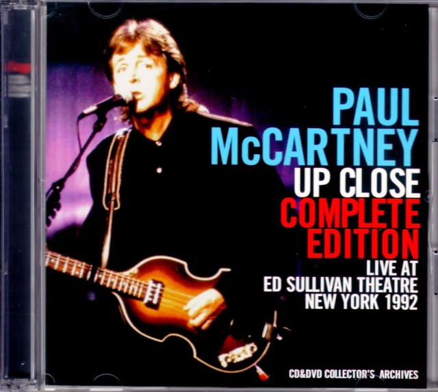 "Up Close", broadcast on MTV in 1992, is now available in a complete edition of CD+DVD with the latest restoration and editing in 2017! Following "Unplugged" held in London the previous year, this was recorded in the same studio live style at the Ed Sullivan Theater in New York, which has been associated with the Beatles since their days on December 10, 1992. It includes many Beatles numbers that were not performed on "Unplugged", including the first live performance of new songs from the new album "Off the Ground" at that time. The CD contains the latest remastered sound source of all the songs. The DVD contains the complete unedited version and the MTV broadcast version including the interview broadcast at the time, completely recorded in the highest quality of Master Direct. The studio live, which is not to be missed along with "Unplugged", is now newly released as the definitive complete edition of sound and video with the latest restoration and editing in 2017! ! CD&DVD COLLECTOR'S ARCHIVES LIVE AT ED SULLIVAN THEATER,NEW YORK1992 DIGITAL ARCHIVES PROMOTION CD 1. INTRODUCTION 2. TWENTY FLIGHT ROCK 3. GET OUT OF MY WAY 4. FIXING A HOLE 5. LOOKING FOR CHANGES 6. PENNY LANE 7. BIKER LIKE AN ICON 8. I O WE IT ALL TO YOU 9. BIG BOYS BICKERING 10. MICHELLE 11. JINGLE BELLS 12. HOPE OF DELIVERANCE 13. CAN'T BUY ME LOVE 14. PEACE IN THE NEIGHBOURHOOD 15. OFF THE GROUND 16. I WANNA BE YOUR MAN 17. SGT.PEPPER'S LONELY HEARTS CLUB BAND 18. MY LOVE 19. C MOON 20. LADY MADONNA 21. C'MON PEOPLE 22. THANK YOU NEW YORK 23. LIVE AND LET DIE Live At Ed Sullivan Theatre, New York, NY, U.S.A. December 10th 1992 DVD COMPLETE UNEDITED VERSION INTRODUCTION TWENTY FLIGHT ROCK GET OUT OF MY WAY FIXING A HOLE LOOKING FOR CHANGES PENNY LANE BIKER LIKE AN ICON I OWE IT ALL TO YOU BIG BOYS BICKERING MICHELLE JINGLE BELLS HOPE OF DELIVERANCE CAN'T BUY ME LOVE PEACE IN THE NEIGHBOURHOOD OFF THE GROUND I WANNA BE YOUR MAN SGT.PEPPER'S LONELY HEARTS CLUB BANDMY LOVE C MOON LADY MADONNA C'MON PEOPLE LIVE AND LET DIE BACKSTAGE TV BROADCAST VERSION INTRODUCTION TWENTY FLIGHT ROCK Paul's Comment GET OUT OF MY WAY Paul's Comment FIXING A HOLE Paul's Comment LOOKING FORCHANGES Paul's Comment PENNY LANE BIKER LIKE AN ICON Paul's Comment DELIVERANCE JAM Paul's Comment I WANNA BE YOUR MAN Paul's Comment OFF THE GROUND Paul's Comment / JAM (Sticky Boogie) SGT.PEPPER'S LONELY HEARTS CLUB BAND Paul's Comment / JAM (Washing Windows) MY LOVE Paul's Comment LADY MADONNA Band Introductions END CREDITS (Singalong Junk) NTSC 16:9 Dolby Digital Stereo time approx. 91+70 = 161min.