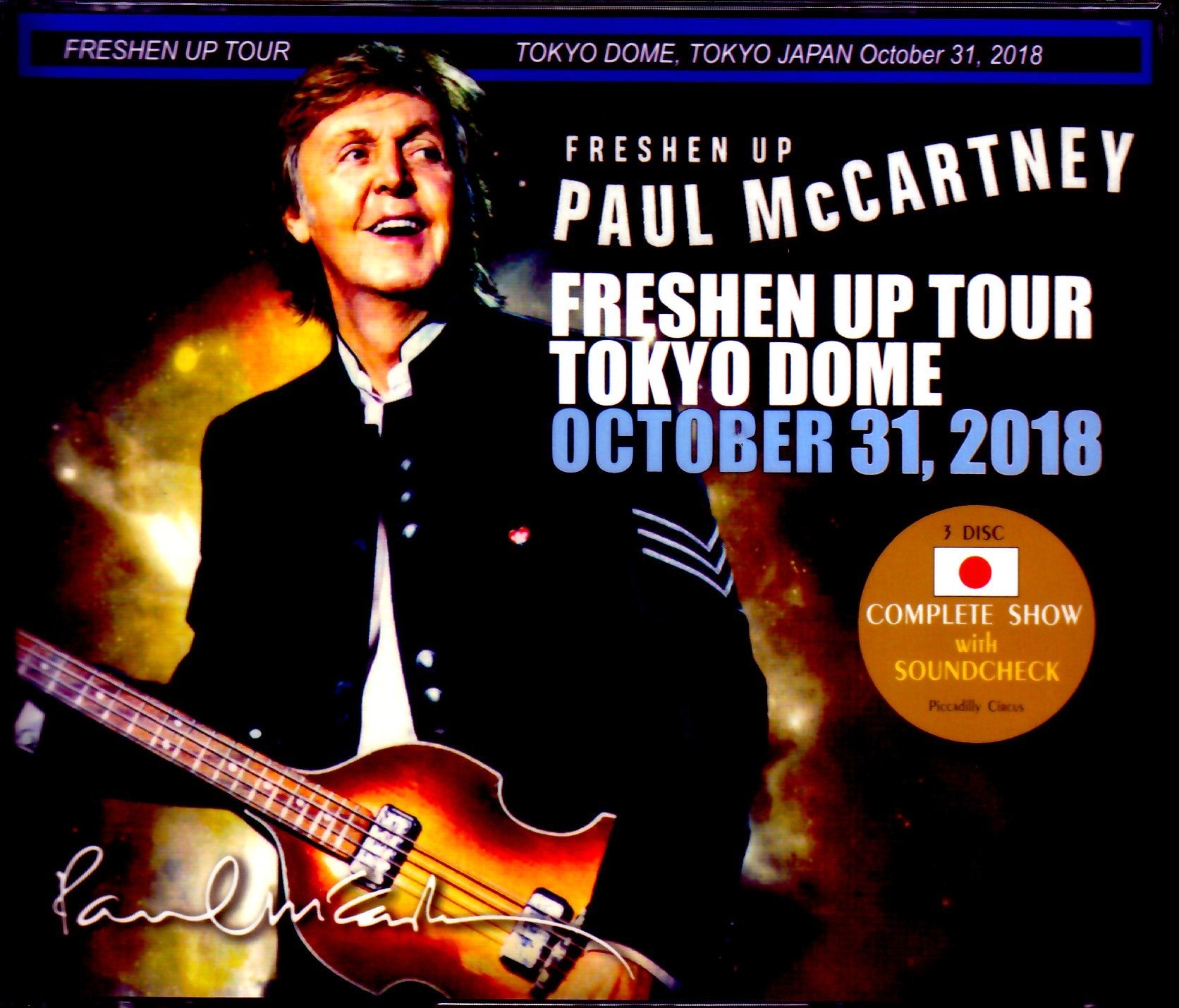 Paul McCartney has entered 2018 with warm-up gigs in Liverpool and London in June and July. Then, on September 7, 2018, a special live performance was held at a special stage in New York's Grand Central Station. Although the set list is simpler than usual, there is no sense of Paul's decline as a musician, and although the band has already entered its 16th year since becoming a member, everyone is performing wonderfully. Finally, they announced that they will be going on a new tour titled FRESHEN UP TOUR, replacing the previous ONE ON ONE TOUR. The tour will kick off in Canada in September 2018, include festival appearances, and has an American schedule scheduled for 2019. Then, in 2018, a performance was held in Japan as part of this FRESHEN UP TOUR. Even he himself would not have expected that at the age of 76, more than half a century after he first came to Japan at the age of 24, he would still be performing large-scale stadium concerts in faraway Japan. The schedule is as follows. October 31, 2018 Tokyo Dome November 1, 2018 Tokyo Dome November 5, 2018 Ryogoku Kokugikan November 8, 2018 Nagoya Dome This is the first Ryogoku Kokugikan, and the 1980 Wings was scheduled. It is unique in that it includes the Nagoya performance, which was originally canceled. Although the number of Tokyo Dome performances has been reduced from three last time to two, it would be impossible for an artist other than a big name like Paul to have the mobilization power to fill the dome stadium over and over again. This work is a complete recording of the first day of the 2018 Tokyo Dome performance, including the sound check. A distinctive feature of the FRESHEN UP TOUR is that they have added new songs from their new album "EGYPT STATION" to their repertoire. Moreover, he played two songs, “Who Cares” and “Come On To Me” at the beginning of the concert, and “Fuh You” in the middle. All of these songs seem to have been designed with concert performance in mind, and serve as an important accent to the stage composition. Also, “From Me To You” will be premiered on this tour. It is one of the Beatles' representative songs from the very early days, and is featured as one of their acoustic corner songs. Other than that, if you just look at the songs on the set list, contrary to the tour title, there are no fresh selections, and there are songs that have been played before. However, if we were to highlight the characteristics of this tour, we should focus on the arrangements rather than the songs. The major difference from traditional Paul stages is the addition of a brass section. Until now, with the exception of Wings in the 70's, basically no one other than band members joined Paul's stage. Of course, there were times when bagpipe bands took the stage and guests performed. However, there were no musicians who accompanied the tour and participated in the concert production every night. For the first time, a brass section joined the band. The arrangement intentionally takes advantage of the fact that the sounds that had previously been substituted by Wicks's keyboard are now played using real instruments. The brass section makes its first appearance on "Letting Go." What's more, the audience is excited by the surprise performance that is suddenly performed by the members who are lined up in the audience seats instead of on the stage. In the second half of the song, a short brass solo is inserted into the break, making the arrangement even more outstanding. It is also featured extensively in the new song "Come On To Me". The brass section also plays an important role in "Let 'Em In," "Lady Madonna," "Ob La Di Ob La Da," "Live And Let Die," "Hey Jude," and the final Abbey Road medley. . Additionally, the Japanese word ``ichiban'' is used in the song ``Back In Blazil'' from the album ``Egypt Station''. It was previously rumored that this song would be premiered in Japan, but in the end it was added as an intro at the beginning of "Come On To Me". Although it is a small detail, this is also an arrangement that was first introduced in Japan. [October 31, 2018 Tokyo Dome Performance] The first day of the 2018 Japan performance opened with “A Hard Day’s Night”, a feature of the FRESHEN UP TOUR up to that point. This time, the acoustics are excellent, and the sound is more dense and looming than before, which is what surprises me. This is Paul's stage in 2018, which has a thick sound image suitable for facing an audience of 50,000 people with only five members. What's more, a horn section has been added, making it a ``fascinating'' show with beautiful lighting. The recording of this work was recorded in the front row of the stage, and it is recorded with the best sound quality in the performance in Japan since 2013. Also, Disc 3 is the sound check sound source that was held before the actual performance of the day. A public sound check for VIP tickets that will perform rare songs and cover songs that will not be performed in the main event. On this day, they played songs such as ``Day Tripper'' and ``Things We Said Today'', which they haven't heard in a while. From the 2018 performance in Japan, the first day's Tokyo Dome performance on October 31st was completely recorded in ultra-high quality from the front row. It is recorded with the highest sound quality in the performance in Japan so far. If you can follow Paul's live performances since 2003 in real time, this time as well, you will be able to get the latest tours from time to time with the label that has been delivering them in high quality as soon as possible. I think that many titles will be released this time as well, but there is no need to compare them with others, as long as this work is the definitive one, it will be enough. ■Complete recording of the Tokyo Dome performance on October 31, 2018 ■Super high-quality sound that gives you a sense of realism with front row recording from the stage cover ■Complete recording from the sou