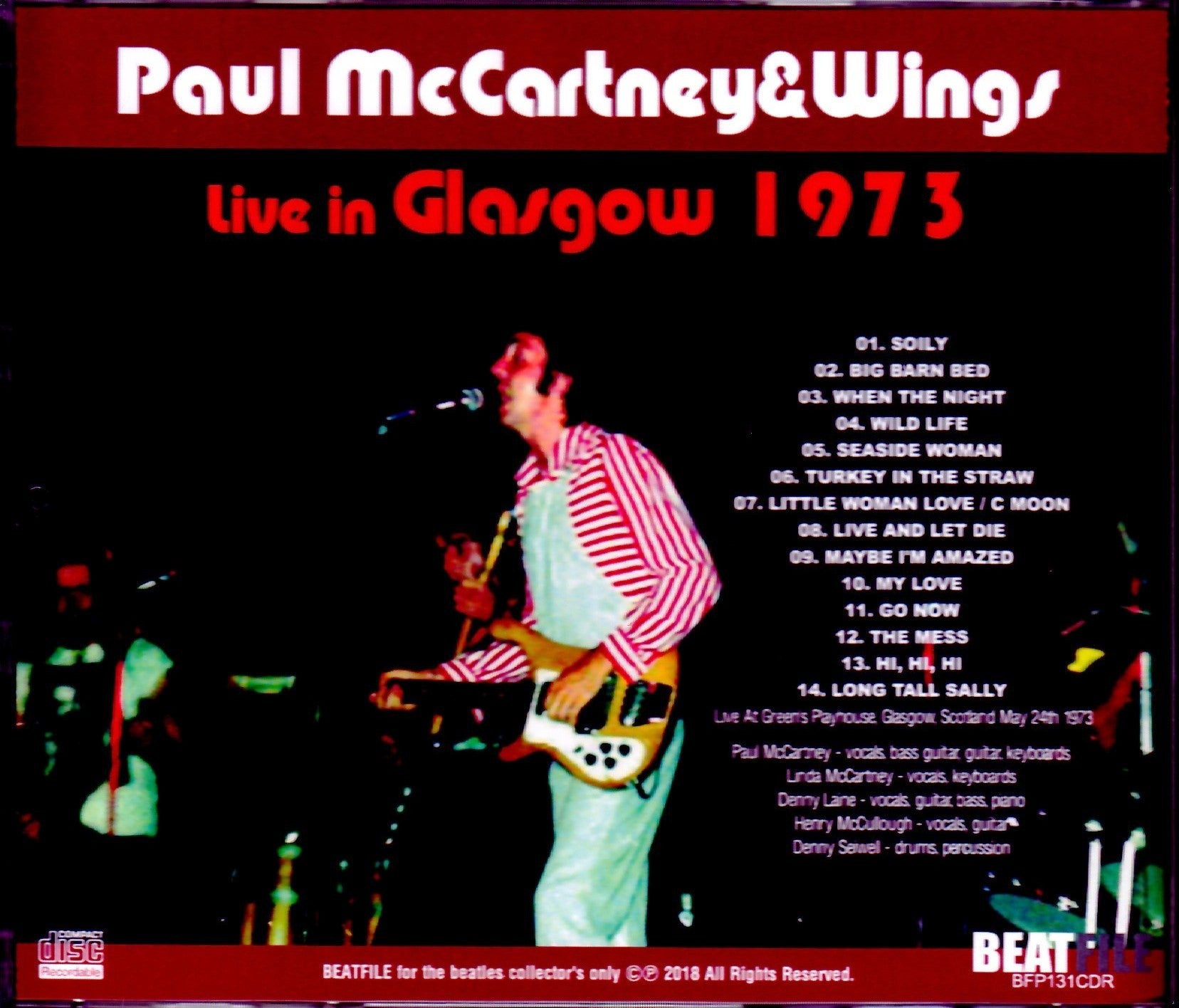 01. SOILY 02. BIG BARN BED 03. WHEN THE NIGHT 04. WILD LIFE 05. SEASIDE WOMAN 06. TURKEY IN THE STRAW 07. LITTLE WOMAN LOVE / C MOON 08. LIVE AND LET DIE 09. MAYBE I'M AMAZED 10. MY LOVE 11. GO NOW 12. THE MESS 13. HI, HI, HI 14. LONG TALL SALLY Live At Green's Playhouse, Glasgow, Scotland May 24th 1973
