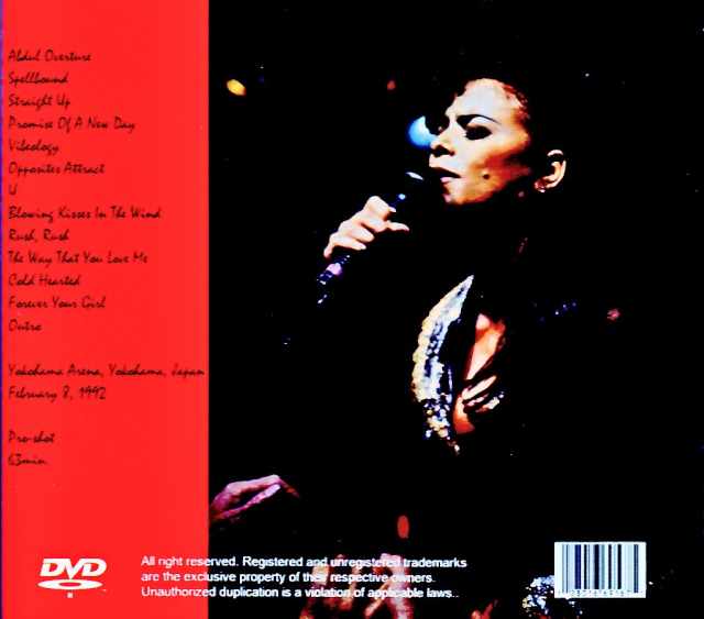 Yokohama Arena, Yokohama, Japan February 8, 1992 Abdul Overture Spellbound Straight Up Promise Of A New Day Vibeology Opposites Attract U Blowing Kisses In The Wind Rush, Rush The Way That You Love Me Cold Hearted Forever Your Girl Outro Pro-shot 63min.