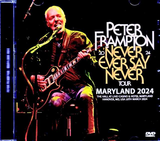 Peter Frampton in 2024 launched the "NEVER EVER SAY NEVER Tour" to celebrate his 60th anniversary of touring. Here is the best video that allows you to fully experience the latest stage. This work was shot at the "March 10, 2024 Hanover Performance". This is a superb audience shot. If you have noticed this article, you may feel a sense of déjà vu in the title, but this work is actually a sister work of last year's masterpiece "MARYLAND 2023". In order to explain the circumstances, let's first review Frampton's recent situation in the schedule. 2022 "FINALE: THE FAREWELL Tour" November 5-16: Europe (8 shows) 2023 January 6 + 22: North America #1 (2 shows) "NEVER SAY NEVER Tour" June 19-August 18: North America #2 (26 shows) ← * MARYLAND 2023 November 9-December 7: North America #3 (9 shows) 2024 "NEVER EVER SAY NEVER Tour" March 3-April 14: North America #4 (18 shows) ← ★ Here ★ This is the schedule that has been announced so far since the pandemic. In 2022, he completed the "FINALE: THE FAREWELL Tour" that was interrupted by the pandemic, but shortly thereafter he canceled his retirement and started the "NEVER SAY NEVER Tour". This year, he has further changed the title to "Never EVER Say Never Tour" and is working hard. In the midst of all this, the Hanover performance of this work was the fifth concert of the latest leg "North America # 4" currently in progress. This work, which vacuum-packed such a scene, is a sister video that is very similar to the previous work "MARYLAND 2023". Not only is it the same city (the venue is different), but if the photographer is the same, the position, angle, and quality are very similar. If you play each song alternately, you won't know which is which. If you know the previous work, you may have already made up your mind, but for those who don't, this work is "The Spectacular View". Although the image without any obstructions is called "spectacular view", this work is full of Frampton zoomed in to the full screen. Although it follows the highlights of the band members, the main character is basically Den! and occupies the screen. The audience in the arena seats are not reflected, and the "monopoly feeling" that Frampton sings for you alone is amazing. Such a spectacular experience was also available in "MARYLAND 2023," but this work is just another performance on a different tour. The sets are similar but different. For those who have experienced the previous work here, let's organize it in a similar format. Originals (13 songs + α) ・Frampton's Camel: I Got My Eyes On You / Lines On My Face / Do You Feel Like We Do ・Something's Happening: Golden Goose (★) / I Wanna Go to the Sun (★) ・Frampton: Show Me The Way / The Crying Clown / Nassau-Baby, I Love Your Way / (I'll Give You) Money ・Others: Lying / Shine On / All I Want to Be Be (Is by Your Side) / Can't Take That Away Covers (4 songs) ・Georgia On My Mind / Black Hole Sun / Four Day Creep / I Don't Need No Doctor *Note: The "★" mark indicates songs that were not seen in the previous work "MARYLAND 2023". ...And so on. A slide show that briefly summarizes his glorious career will be screened from the start of the show, but the live performance itself will also include more original songs. While the Beatles' "While My Guitar Gently Weeps," which was the finale of the previous work, was omitted, this time two songs from "SOMETHIN'S HAPPENING" were added. Although it is the 60th anniversary of the tour life, it seems that they did not take the adventure of reproducing the THE HERD era, but chose a set rich in the "golden 70's" color that everyone wants. This work closes with an inspiring MC who powerfully speaks about his pride as a musician. It is a superb view video that allows you to monopolize Peter Frampton, who has returned to his touring life despite suffering from the incurable disease "inclusion body myositis". It is a must-see sequel for those who were hit by "MARYLAND 2023", and a powerful counter punch for those who say "Is it really that amazing?". A superb view audience shot of the "Hanover performance on March 10, 2024". This is a sister work by the same photographer as last year's previous work "MARYLAND 2023 (Uxbridge 1976)", and the sequel is very similar in both angle and quality. There are plenty of close-ups of Frampton, and you can feel like he is singing just for you. This is a masterpiece that allows you to monopolize the full show of his 60th anniversary tour life, including repertoires that were not in the previous work, such as "Golden Goose" and "I Wanna Go to the Sun". The Hall at Live! Casino & Hotel Maryland, Hanover, MD, USA 10th March 2024 AMAZING SHOT!!! 1. Pre-Show 2. Video Montage Of Peter Frampton's Career 3. Golden Goose 4. Lying 5. Shine On (Humble Pie song) 6. I Got My Eyes On You 7. Lines On My Face 8. Show Me The Way 9. Georgia (On My Mind) 10. The Crying Clown 11 I Wanna Go To The Sun 12. Baby, I Love Your Way 13. All I Wanna Be (Is by Your Side) 14. Can't Take That Away 15. Black Hole Sun 16. (I'll Give You) Money 17. Do You Feel Like We Do 18. Four Day Creep 19. I Don't Need No Doctor 20. MC Peter Frampton - Vocals, Guitar Rob Arthur - Keyboards, Guitar, Vocals Dan Wojciechowski - Drums Alison Prestwood- Bass Pat Bergeson - Guitar, Vocals COLOR NTSC Approx.132min.