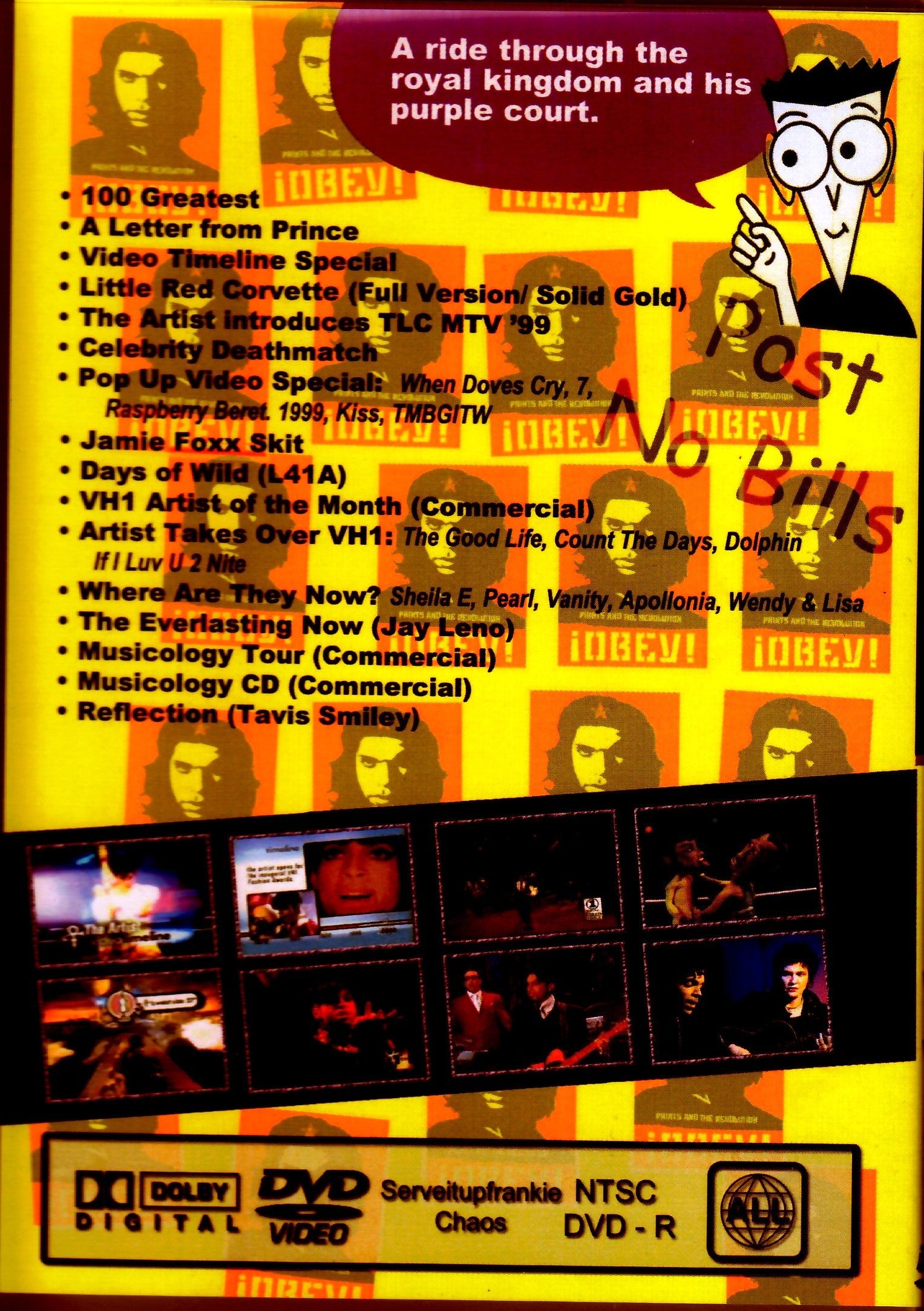 Reflections is a nice release that pokes at the corner of such a heavy box, containing things that I knew were available but missed, or that I didn't collect because I thought they were news footage. The sequel is here. This time, we'll be focusing on For Dummies, a super maniac video collection of people who don't have a good opinion of Prince, such as him being short, having a bad taste for women, and other such negative viewpoints. It's hilarious to see a letter handwritten by Prince, trivia about Prince explained in English, and a clay Prince appearing to fight Prince Charles. Also, I'm sure many people would like to know what happened to Pearl from D&P. Several musicology commercials from the era when they were still able to sell a lot of CDs are also included, along with the tour. Overall, the quality is excellent, and the video breaks of Solid Gold in 1983 and VH-1 in 1996 can be said to be the best ever. This is a must-have video collection for Prince enthusiasts who knew something like this existed, but didn't know about it. VH-1 100 Greatest Moments Video Montage VH-1 Documentary Letter From Prince VH-1 'The Artist' Video Timeline Timeline Solid Gold : 4th April 1983 (Broadcast 13th May 1983) Little Red Corvette MTV Video Music Awards : 9th September 1999 Introduces TLC MTV Celebrity Death Match The Artist Formerly Known As Prince V's The Prince Formerly Known As Charles VH-1 Pop Up Video When Doves Cry / 7 / Raspberry Beret / 1999 / Kiss / The Most Beautiful Girl In The World Jamie Foxx Comedy Sketch Sketch VH- 1 Love 4 One Another : 27th January 1996 Days Of Wild VH-1 Artist Of The Month Commercial VH-1 Video Break : 27th January 1996 The Good Life / Count The Days / Dolphin / If I Love U 2Night VH-1 'Where Are They Now?' Sheila E / Robia LaMorte (Pearl) / Vanity / Apollonia / Wendy & Lisa The Tonight Show w/ Jay Leno : 13th December 2002 The Everlasting Now Charlie Murphey's True Hollywood Stories Sketch Musicology Tour Commercial Musicology Tour Dates Commercial Musicology Album Commercial Musicology Album Commercial Tavis Smiley : 12th February 2004 (Broadcast 19th February 2004) Reflection