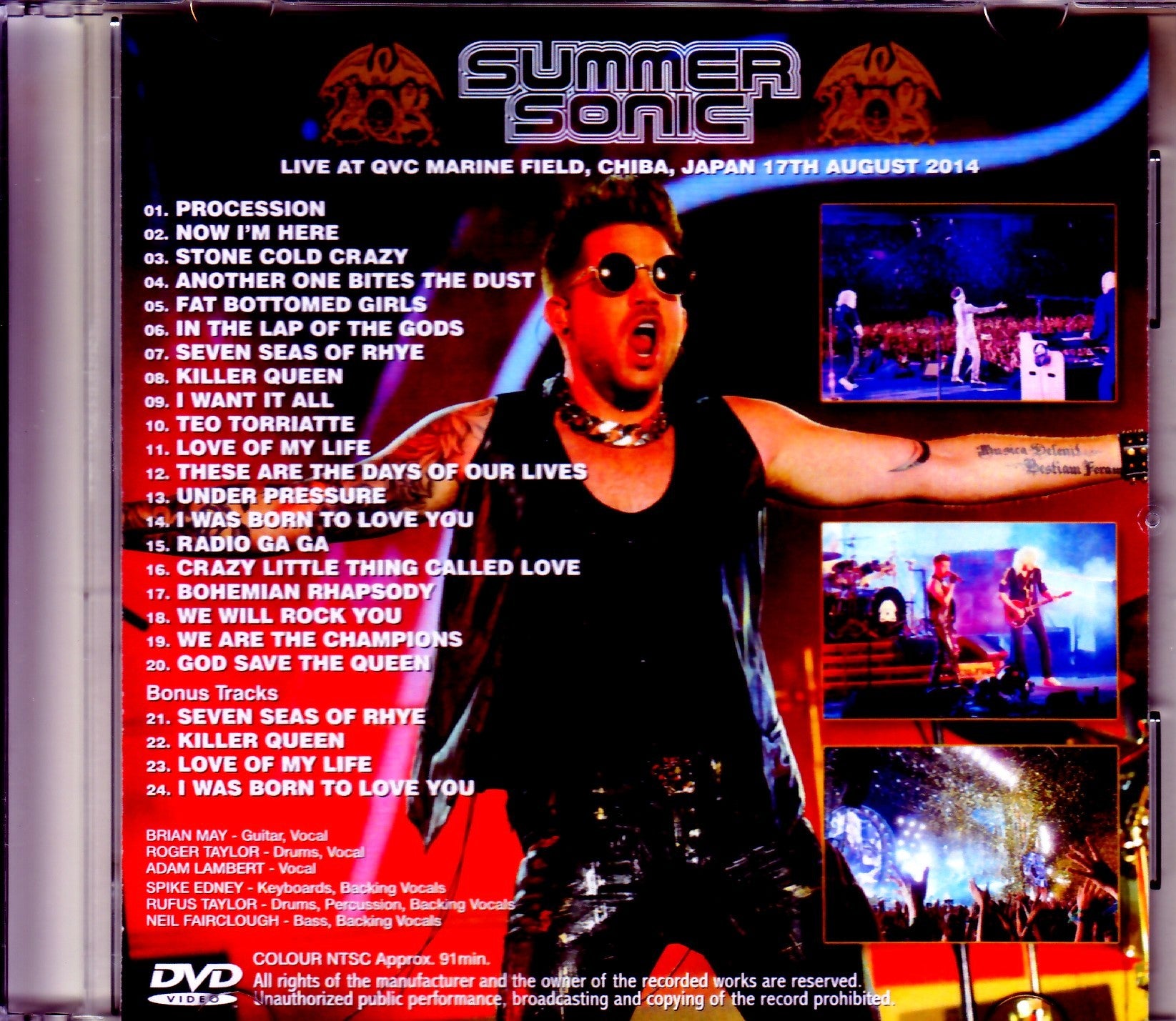“Summer Sonic 2014” was QUEEN + Adam Lambert’s first visit to Japan and their only official work. The super-excellent video that will be the 100% trial version of the original version will be released. What is included in this work is, of course, the “August 17, 2014: Chiba Marine Stadium” performance. This is the best audience shot. We can't wait for their third visit to Japan, scheduled for January 2020, but let's take a look at their Japanese performances and understand the show's position within them. ●August 16, 2014: SUMMER SONIC OSAKA・August 17: SUMMER SONIC TOKYO [This work] ●September 21-23, 2016: Nippon Budokan (3 performances) ●January 25, 2020 Sunday + 26th: Saitama Super Arena, January 28th: Kyocera Dome Osaka, January 30th: Nagoya Dome, and so on. QUEEN + Adam started touring in 2012, but at that time there were only 6 performances in Europe. Their first world tour was in 2014, and they visited Japan early on. Of course, their first visit to Japan became a hot topic, and countless audience records began to emerge immediately after the show. This work is the pinnacle of that. The quality is truly amazing. It is not a one-shot video, but a reproduction of the full show with different shots for each song (outtakes from different angles for 4 songs are also included as a bonus). For that reason, I can't say "the angle is ○○" or "the distance is △△", but each video is exquisite because it has been carefully selected. From the seats close to the arena, you can get a direct shot with the power of a professional shot, and in the distance, you can see the light show and the spectacle of the huge "Q" screen. Of course, the images that would cause you to be bothered by the shadows in the front row were not selected, and you can enjoy the full show from every seat. What enhances this scene is the sound. While the sight changes in various ways, the audio is a recording of one step of penetration. It is also the best recording of the day, and the clear sense of air and direct feeling of the core are exquisite. This direct feeling is important. In the case of videos where the scene changes, if the audio is far away or the angle is lopsided, it will create a sense of discomfort. However, the sound of this work is so intense that you can't tell where it was recorded, so it fits any perspective. Although it is difficult to say that it is “just like a professional shot” because there is actually an official work, its worth seeing and listening is on a different level from the ordinary audience shots. And above all, the experience. Of course, the official pro shot is wonderful as a music video, but its perspective is on a different level from what you witness at the venue. However, this work is a series of real audience perspectives (although it changes from song to song). I can't wait for the third performance in Japan to be held in January 2020, but I wonder what kind of scene I will be able to see at the scene...This work is a piece that stirs up that imagination with the highest quality. The content of the show is the same as the official pro shot “LIVE IN JAPAN”, so I won’t go into details, but this work is a video work that allows you to experience that wonderful show as if it were on site. At that time, the official work appeared later. Although its original role has ended, the brilliance of its overflowing sense of the field has not been lost. Even if the professional shots of “LIVE AID” remain, it is the same as the reproduction movie version and audience recording that give a different impression. It's the perfect video to reflect on your upcoming visit to Japan in six months, but at the same time, it's also a moving piece that captures the feeling of QUEEN + Adam's first visit to Japan, which was wonderful. Live at QVC Marine Field, Chiba, Japan 17th August 2014 AMAZING SHOT (with Original Masters Audio) (1:30:57) 1. Procession 2. Now I'm Here 3. Stone Cold Crazy 4. Another One Bites The Dust 5 . Fat Bottomed Girls 6. In The Lap Of The Gods 7. Seven Seas Of Rhye 8. Killer Queen 9. I Want It All 10. Teo Torriatte 11. Love Of My Life 12. These Are The Days Of Our Lives 13. Under Pressure 14. I Was Born To Love You 15. Radio Ga Ga 16. Crazy Little Thing Called Love 17. Bohemian Rhapsody 18. We Will Rock You 19. We Are The Champions 20. God Save The Queen Bonus Tracks 21. Seven Seas Of Rhye 22. Killer Queen 23. Love Of My Life 24. I Was Born To Love You COLOR NTSC Approx. 91min.