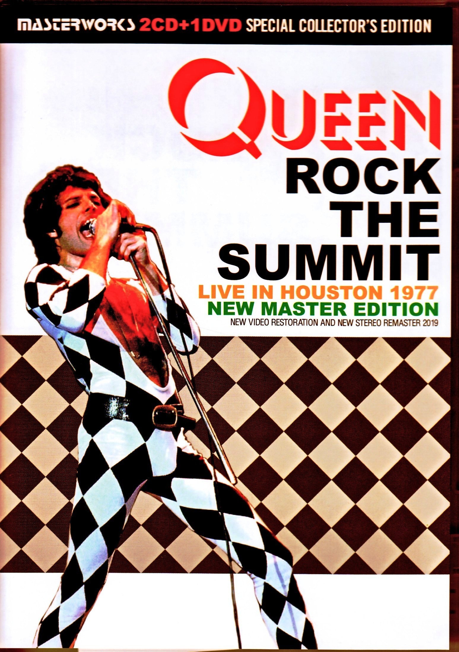 CD1 1. WE WILL ROCK YOU (INTRO) 2. WE WILL ROCK YOU (FAST) 3. BRIGHTON ROCK 4. SOMEBODY TO LOVE 5. DEATH ON TWO LEGS 6. KILLER QUEEN 7. GOOD OLD FASHIONED LOVER BOY 8. I'M IN LOVE WITH MY CAR 9. GET DOWN MAKE LOVE 10. THE MILLIONAIRE WALTZ 11. YOU'RE MY BEST FRIEND 12. LIAR 13. LOVE OF MY LIFE 14. '39 15. MY MELANCHOLY BLUES CD2 1. WHITE MAN 2. VOCAL IMPROVISATION 3. GUITAR SOLO 4. NOW I'M HERE 5. STONE COLD CRAZY 6. BOHEMIAN RHAPSODY 7. KEEP YOURSELF ALIVE 8. TIE YOUR MOTHER DOWN 9. WE WILL ROCK YOU 10. WE ARE THE CHAMPIONS 11. SHEER HEART ATTACK 12 JAILHOUSE ROCK 13. GOD SAVE THE QUEEN Live at The Summit, Houston, Texas, USA - December 11, 1977 New Stereo Remaster 2019 by Masterworks DVD WE WILL ROCK YOU (Intro) WE WILL ROCK YOU (Fast) BRIGHTON ROCK SOMEBODY TO LOVE DEATH ON TWO LEGS KILLER QUEEN GOOD OLD FASHIONED LOVER BOY I'M IN LOVE WITH MY CAR GET DOWN MAKE LOVE THE MILLIONAIRE WALTZ YOU'RE MY BEST FRIEND LIAR LOVE OF MY LIFE '39 MY MELANCHOLY BLUES WHITE MAN VOCAL IMPROVISATION GUITAR SOLO NOW I 'M HERE STONE COLD CRAZY BOHEMIAN RHAPSODY KEEP YOURSELF ALIVE TIE YOUR MOTHER DOWN WE WILL ROCK YOU WE ARE THE CHAMPIONS SHEER HEART ATTACK JAILHOUSE ROCK GOD SAVE THE QUEEN Live at The Summit, Houston, Texas, USA - December 11, 1977 NTSC 16: 9 Dolby Digital Stereo time approx.114min. AUDIO OPTION 1=NEW STEREO REMASTER 2=ORIGINAL FILM REMASTER