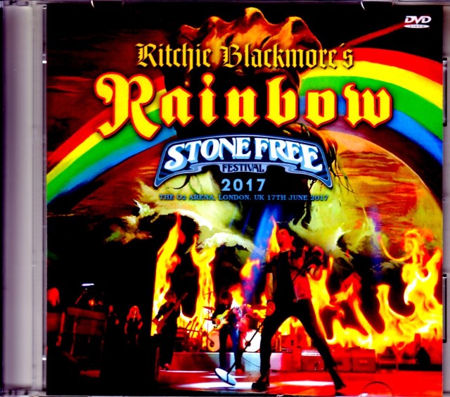 "21st Century RAINBOW" has restarted! The video title that reports on the first night of "Ritchie the Rock" who took the stage again as promised has been decided! It's been a year since that shocking revival. In 2017, Richie came back to play rock. This work contains the first day, "June 17, 2017: London performance". It is an audience shot when he appeared as the headliner of the British rock festival "STONE FREE FESTIVAL". First, let's check the current live schedule. "RITCHIE BLACKMORE'S RAINBOW" June 17: London performance [This work] June 22: Manchester performance (cancelled) June 25: Glasgow performance June 28: Birmingham performance "BLACKMORE'S NIGHT" July 30-August 19: Europe (9 performances) These are the currently announced schedules. Initially, RAINBOW was scheduled to perform four shows, but a terrorist bombing occurred at the Manchester Arena, the venue for the Manchester performance. The venue was unavailable and the performance was canceled. The London performance of this work is the very first day. Before this, Richie stood on stage for the last time at BLACKMORE'S NIGHT on October 29th last year (you can enjoy the pattern on the live album "HARRISBURG 2016"). It was not only RAINBOW, but also Richie's first stage of 2017. This work, which reports on such a show as quickly as possible, is a collection of videos spelled out with numerous audience shots. The footage began to overflow immediately after the show, but there is still no shot of the entire show. At this point in time, it is a collection of the best shots of each song and a reproduction of almost the entire show (unfortunately, "Difficult to Cure" and the drum solo are not included). Therefore, it is not possible to say "the angle is ○○" or "the image quality is △△", but this is a carefully selected one. All of the images are of the finest quality and sound, made possible by modern digital equipment, and Richie's facial expressions and gestures are vivid and perfect. And the show of "RAINBOW 2017" depicted by that sound is what is attracting attention. The set itself is based on the best Birmingham performance last year, but has been slightly changed. Instead of the purple songs "Highway Star" and "Perfect Strangers", "I Surrender", "All Night Long" and "Still I'm Sad" have been added. Although "Woman From Tokyo" is slightly sandwiched in "Man on the Silver Mountain", the show is more intense and rainbow-colored overall. The opening scene also strongly appeals to the "rainbow". The newly recorded version of "Land of Hope and Glory", which was recently released, is also new, but the pole position that leads to "Over the Rainbow" is "Spotlight Kid"! Last year they played "Highway Star," but this song really makes me feel like it's "RAINBOW!". There were many other things different from last year. First of all, the stage set has changed. The mechanical rainbow arch from last year is gone, and a giant monitor is in charge of the production. The images projected on it are excellent. In "Still I'm Sad," nostalgic flyers and jackets appear one after another (Japanese company names in katakana...), in "Burn," a huge flame burns, and in "Child in Time," a huge eyeball glares at the audience. And at the end of the song, there is even a "punchline" where you can see that the eye is from the jacket of "STRAIGHT BETWEEN THE EYES" (but why this song?). Even more touching than that are "Man on the Silver Mountain" and "Long Live Rock 'n' Roll." A young Ronnie James Dio is projected, standing next to Richie and singing passionately. Last year's rainbow arch was amazing, so it's surprising (or rather, disappointing) that it will be over after only three performances, but it's a production that only happens in 2017, when giant monitors are all the rage. In addition, a surprise guest also appeared on this day. In "Since You Been Gone," the original author Russ Ballard will also participate in the performance on guitar! The audience at the venue was in a "Who is this guy?" state, but this is amazing. I think many people will be seeing "Russ Ballard in motion" for the first time. Anyway, RAINBOW has started moving again. The "rainbow dream" that was hotly aroused a year ago. You can enjoy "that continuation" over the next two weeks. This work is the first to announce the beginning. A real-time experience that can be enjoyed again in the 21st century. Live at the O2 Arena, London, UK 17th June 2017 (93:16) 1. Land of Hope and Glory 2. Over the Rainbow 3. Spotlight Kid 4. I Surrender 5. Mistreated 6. Since You Been Gone(with Russ Ballard) 7. Man on the Silver Mountain 8. Soldier of Fortune 9. All Night Long 10. Child in Time 11. Stargazer 12. Still I'm Sad 13. Long Live Rock 'n' Roll 14. Black Night 15. Burn 16. Catch the Rainbow 17. Smoke on the Water COLOR NTSC Approx. 93min.