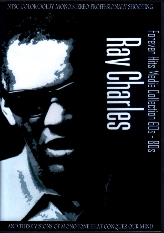 Ranked 2nd in Rolling Stone's "100 Greatest Singers of All Time," this blind American musician is also known as the God of Soul. His life is told in the movie "Ray," and this 2-disc DVD contains Ray Charles' historic activities. It includes his first million-seller in 1959, "What I Say," Ray's signature song "I Can't Stop Loving You," which reached number one in the U.S. in June 1962 and number two for the year, and "Georgia On My Mind," which officially became the state song of Georgia on April 24, 1979. The recording time is 190 minutes with menu capture. Forever Hits Media Collection 60s - 80s Hits: Mess around Hallelujah, I love her so I'm a fool for you What'd I say let the good times roll Sticks and stones Georgia on my mind Hit the road, Jack Unchain my heart I can't stop loving you You don't know me You are my sunshine Your cheatin' heart Busted No one That lucky old sun Cryin' time Yesterday Eleanor Rigby Don't change on me Look what they done to my song ma I can see clearly now Duets: Cryin' time Cryin' time Look what they done to my song ma I can't stop loving you I takes two to tango Hit the road, Jack Non-charting songs: Nobody but you Anything for love Finders keepers, losers weepers Ring of fire Medley Oh, what a beautiful morning Shake your tail feathers Let it be More clips: Georgia on my mind Hit the road jack 3x I can't stop loving you 3x Let the good times roll 2x Take these chains from my heart 2x What'd I say 7x DVD Format: NTSC Source: Professional Shot (Multi Camera) Video Quality: Rating: 8.0 Menus: Yes Chapter Selection: Yes Widescreen: No HD: No Total Running Time: 190 MIN