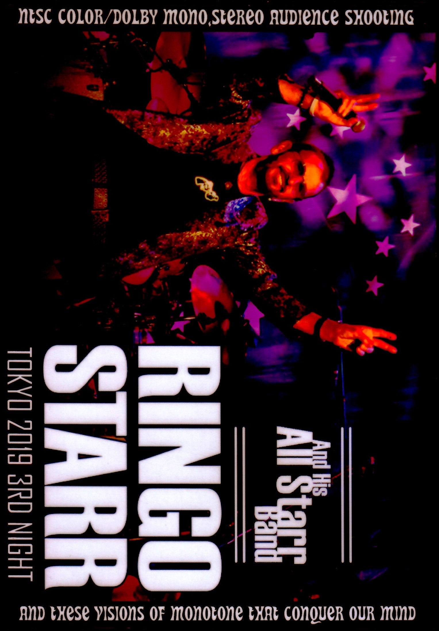 From Ringo Starr and His All Star Band's Japan Tour 2019, which has been a huge success every day, we captured the live performance at Tokyo Dome City Hall on April 6th, the third day of the Tokyo performance, with an HD camera. Including the impressive zoom shots taken from close range in the center front row, the entire movie is completely complete with the most beautiful audience shots that have excellent stability and a variety of camera work even though they are single camera shots. Recorded. The video of the performance in Japan is completely recorded in its entirety with amazing camera work that is second to none, using high-quality, ultra-high-definition audience shots using the label's original HD video footage. The audio is different from just an audience video that synchronizes a high-quality best audience master with the video. Ringo's wonderful performance and the excellent groove of the band members who are fully equipped with technicians, including Beatles numbers and hit numbers from each member's band, this is a very good content packed with all the goodness of a live performance. performance. You can fully enjoy the moving stage of that night with super beautiful images. 1. Intro 2. Matchbox 3. It Don't Come Easy 4. What Goes On 5. Evil Ways (with Gregg Rolie) 6. Rosanna (with Steve Lukather) 7. Pick Up The Pieces (with Hamish Stuart) 8. Down Under (with Colin Hay) 9. Boys 10. Don't Pass Me By 11. Yellow Submarine 12. Cut The Cake (with Hamish Stuart) 13. Black Magic Woman / Gypsy Queen (with Gregg Rolie) 14. Band Introductions 15. You're Sixteen 16. Anthem 17. Overkill (with Colin Hay) 18. Africa (with Steve Lukather) 19. Work To Do (with Hamish Stuart 20. Oye Como Va (with Gregg Rolie) 21. I Wanna Be Your Man 22. Who Can It Be Now? (with Colin Hay) 23. Hold The Line (with Steve Lukather) 24. Photograph 25. Act Naturally 26. With A Little Help From My Friends / Give Peace A Chanceln Live at Tokyo Dome City Hall, Tokyo, Japan, April 6th 2019 Ringo Starr – drums, percussion, piano, vocals Steve Lukather (Toto) – guitars, bass, vocals Colin Hay (Men at Work) – guitars, harmonica, vocals Gregg Rolie (Santana, Journey) – keyboards, vocals Hamish Stuart (Average White Band) – bass, guitar, vocals Gregg Bissonette – drums, trumpet, backing vocals Warren Ham (Bloodrock, Kansas, and AD) – saxophone, harmonica, flute, percussion, keyboards, vocals