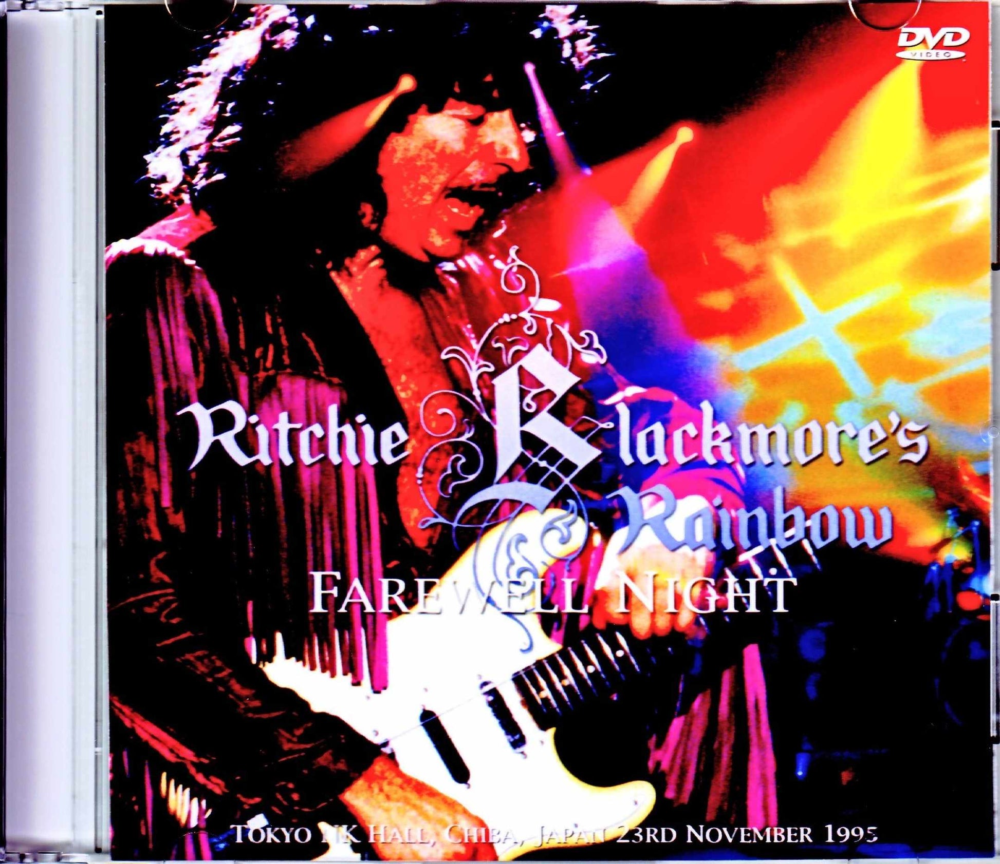 The entire 1995 Japan tour that Ritchie conducted as RITCHIE BLACKMORE'S RAINBOW with Doogie White and Candice Knight has been preserved as an excellent audience source. By the mid-'90s, DAT was already more mainstream than tape for recording, and the clarity and resolution of the sound, even with RAINBOW, was no longer the same as it was in the '70s and '80s (of course, performance is another matter). problem). Another decisive difference compared to the '80s is the presence of excellent audience shots. Also, thanks to the excellent equipment, the last Japan tour (at the moment) under the name RAINBOW was clearly recorded. However, the special one is definitely the final performance at Tokyo Bay NK Hall on November 23rd. I was able to enjoy the live performance with excellent sound even with previously released titles such as "TOO LATE FOR TEARS: The Final Concert In Japan" that will appear this time, but I would like to see the video if possible to know the whole story. It's a thing. This work is the final performance of 1995, digitized directly from the newly discovered top-quality master! The take that previously appeared on Disc 3 of "ELECTRIC EVER" had image quality and sound that could be said to be excellent at the time, but this master is of a younger generation than even that, and the video and audio have been significantly upgraded. (The screen shaking that was noticeable in the previous episodes is played without problems in the master quality main video). This is a large shot of the people on stage, looking from slightly above and to the right of the stage, and the screen is very powerful. The camera angles that get the point are excellent, like the TV footage when capturing the stage from a long range. Anyone can understand the high level of freshness of the master by looking at the natural coloring and clear contours. Richie was wearing the same T-shirt he wore at the Yokohama concert (according to avid fans, the sleeves of his sweatshirt were cut off to make it look like a T-shirt). Richie, who plays the guitar aggressively, has an appearance that he has not shown much in his previous visits to Japan, giving him a youthful impression. The camera mainly captures close-ups of Richie, and you can clearly see the solos and detailed plays in each song. You can enjoy the interaction with Dougie in trad songs, etc., and how he plays the guitar alongside Greg Smith on a clear screen. Of course, the sound is also of good quality. I'm glad that I can enjoy Richie's guitar as well. “STRANGERS IN US ALL” numbers such as “Hunting Humans”, “Black Masquerade”, and “Ariel”, which are developed with the combination of the highest quality video and audio, are irresistible. Of course, the classic songs are also worth watching. “Perfect Strangers” where Richie’s appearance appears in the flash, the powerful “Burn”, and the melodious “Maybe Next Time” and “Street Of Dreams” are the best. Also, don't miss the trad songs featured throughout. In particular, Doogie's singing of "Greensleeves" is wonderful (Richie also appears satisfied by clapping his hands). The big highlight is the farewell song that precedes the last song, “Love Hurts.” Here, the members and staff, including Candice, are lined up side by side in a fun mood. This part, which is unique to the final day, has the fun and excitement that only a video can provide! After concluding the performance with "Love Hurts," Richie's appearance expressing his gratitude to the fans in the venue was also impressive. You can't miss this video until the very end! The same day video that has appeared so far was 116 minutes in total, but this master includes all the encore breaks that were cut in the previous release. Also, the opening and ending are not edited, so you can watch them for longer (4 minutes longer in total, just 2 hours recording). I declare that this work is a more valuable take than the previous releases from every point of view. "TOO LATE FOR TEARS: The Final Concert In Japan" and the package of this work completely cover the final day of the '95 Japan tour from both the top quality sound source and video! Live at Tokyo NK Hall, Chiba, Japan 23rd November 1995 AMAZING-SHOT with Master Audio!!! 1. Over The Rainbow 2. Too Late For Tears 3. Long Live Rock 'n' Roll 4. Hunting Humans 5. Smoke On The Water 6. Wolf To The Moon 7. Difficult To Cure 8. Keyboard Solo 9. Still I'm Sad 10. Drum Solo 11. Man On The Silver Mountain 12. Temple Of The King 13. Black Masquerade 14. Ariel 15. Since You Been Gone 16. Perfect Strangers 17. Farewell Song (Waltzing Matilda) 18. Hall Of The Mountain King 19. Greensleeves 20. Burn 21. Maybe Next Time 22. Street Of Dreams 23. Vocal Improvisation 24. Love Hurts Ritchie Blackmore - Guitar Doogie White - Vocal Greg Smith - Bass Paul Morris - Keyboards Chuck Burgi - Drums Candice Night - Vocal(on Ariel) COLOR NTSC Approx.120min.