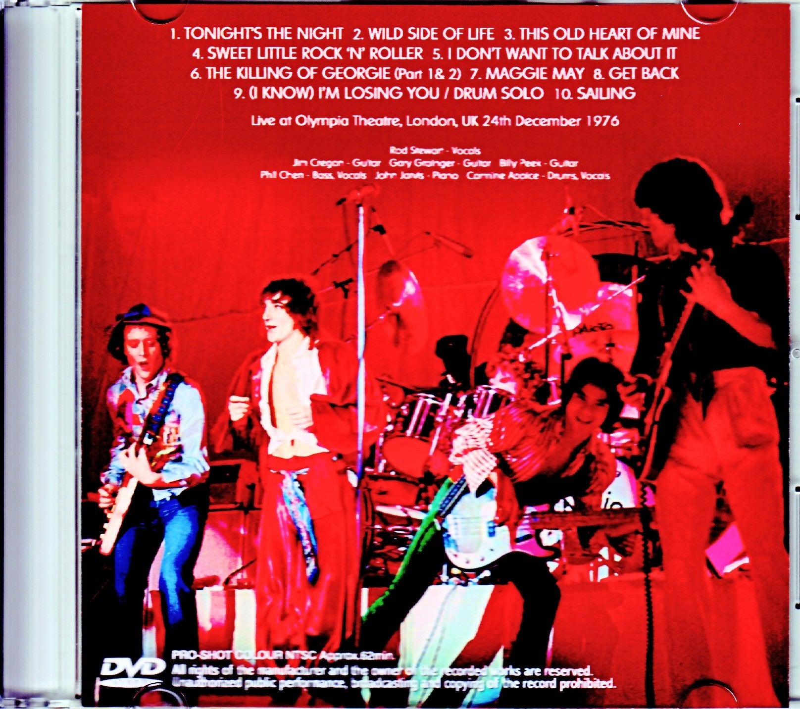 1. Tonight's The Night 2. Wild Side Of Life 3. This Old Heart Of Mine 4. Sweet Little Rock 'n' Roller 5. I Don't Want To Talk About It 6. The Killing Of Georgie (Part I & II) 7. Maggie May 8. Get Back 9. (I Know) I'm Losing You / Drum Solo 10. Sailing PRO-SHOT COLOR NTSC Approx.62min.