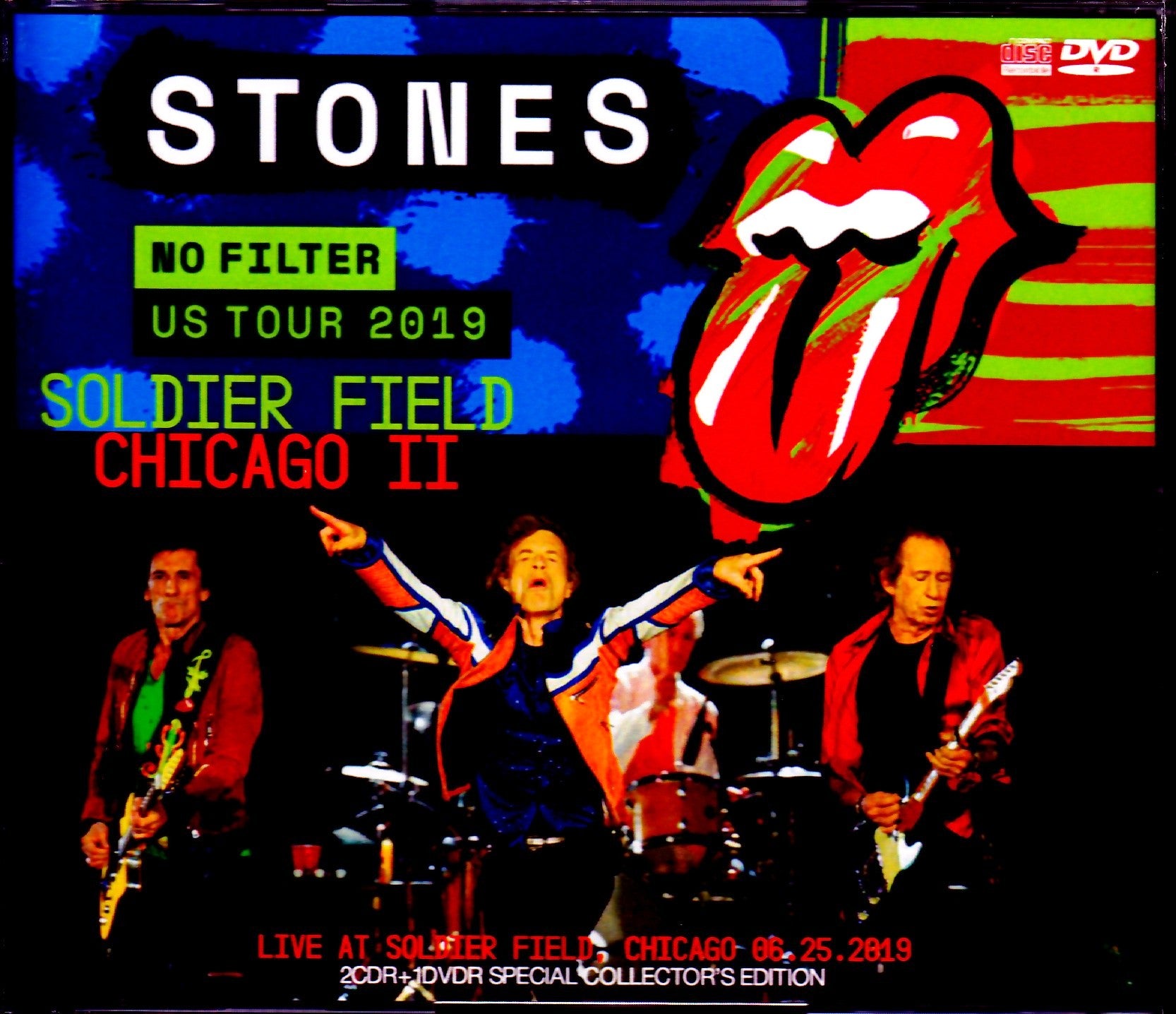 The second show from the 2019 Rolling Stones "NoFilter" North American tour, held at Chicago Soldier Field on June 25, 2019, is a 2CD + 1 DVD 3-disc EXILE collector's special with a coupling of sound and video.・Appeared as an edition! This day's set list started with "Jumpin' Jack Flash", "Monkey Man" was requested, and "Play with Fire" and "Sweet Virginia" were performed on the B stage. Keith performed “Slipping Away” and “Before They Make Me Run.” The incident where “Midnight Rambler” starts playing again by mistake before “Paint It Black” can be seen in the video. This is the latest collector's edition that captures the second day of the 2019 North American tour with sound and video! ! Live at Soldier Field, Chicago, USA 06.25.2019 DISC ONE 01. Introduction / Jumpin' Jack Flash/02. It's Only Rock'n'Roll (But I Like It)/03. Tumbling Dice/04. Bitch/05. Ride 'em On Down/06. Monkey Man/07. You Can't Always Get What You Want/08. Play With Fire/09. Sweet Virginia/10. Sympathy For The Devil/11. Honky Tonk Women/ 12. Band Introduction/13. Slipping Away/14. Before They Make Me Run DISC TWO 01. Miss You/02. False Start / Midnight Rambler Intro/03. Paint It Black/ 04. Midnight Rambler/05. Start Me Up/06. Brown Sugar/07. Gimme Shelter/08. (I Can't Get No) Satisfaction DISC THREE : DVD 01. Introduction / Jumpin' Jack Flash/02. It's Only Rock'n'Roll (But I Like It)/03. Tumbling Dice/04. Bitch/05. Ride'em On Down/06. Monkey Man /07. You Can't Always Get What You Want/08. Play With Fire/09. Sweet Virginia/10. Sympathy For The Devil/11. Honky Tonk Women/ 12. Band Introduction/13. Slipping Away/14. Before They Make Me Run/15. Miss You/16. False Start / Midnight Rambler Intro/17. Paint It Black/18. Midnight Rambler/19. Start Me Up/20 . Brown Sugar/21. Gimme Shelter/22. (I Can't Get No) Satisfaction NTSC 16:9 Wide Screen Dolby Digital Stereo time approx.115min.