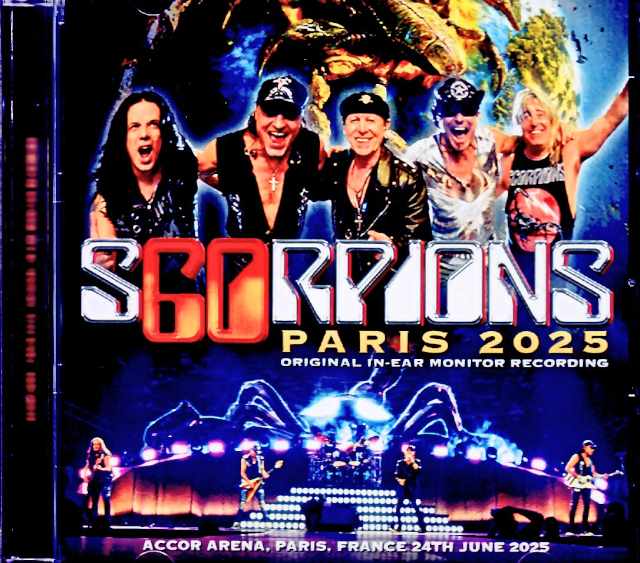 This complete 1 hour and 50 minute recording features the June 24th performance in Paris, France, from the Euro leg of the band's 60th anniversary tour, which began in spring 2025. This is the original master recording of an IEM recording intercepted at the venue, and while there's little to no mix imbalance typical of IEM interception, the guitar is a little loud, the click is still present, and the live sound itself is almost completely unaffected. Focusing on the instruments and vocals alone, the guide noise is barely noticeable at stereo soundboard level. While the album continues the previous year's "LOVE AT FIRST STING" 40th anniversary tour, the selection is even more diverse, with a particularly refreshing '70s medley featuring one track each from each of the four albums from the Uri era. Live at Accor Arena, Paris, France 24th June 2025 : IEM from Original Masters Disc 1 : 1. 60th Anniversary Intro 2. Coming Home 3. Gas in the Tank 4. Make It Real 5. The Zoo 6. Coast to Coast 7. Top of the Bill / Steamrock Fever / Speedy's Coming / Catch Your Train 8. Bad Boys Running Wild 9. Delicate Dance 10. Send Me an Angel 11. Wind of Change Disc 2 : 1. Loving You Sunday Morning 2. I'm Leaving You 3. New Vision 4. Tease Me Please Me 5. Big City Nights 6. Still Loving You 7. Blackout 8. Rock You Like a Hurricane Klaus Meine - lead vocals / Rudolf Schenker - rhythm guitar, backing vocals / Matthias Jabs - lead guitar, backing vocals / Pawe M Ciwoda - bass backing vocals / Mikkey Dee - drums
