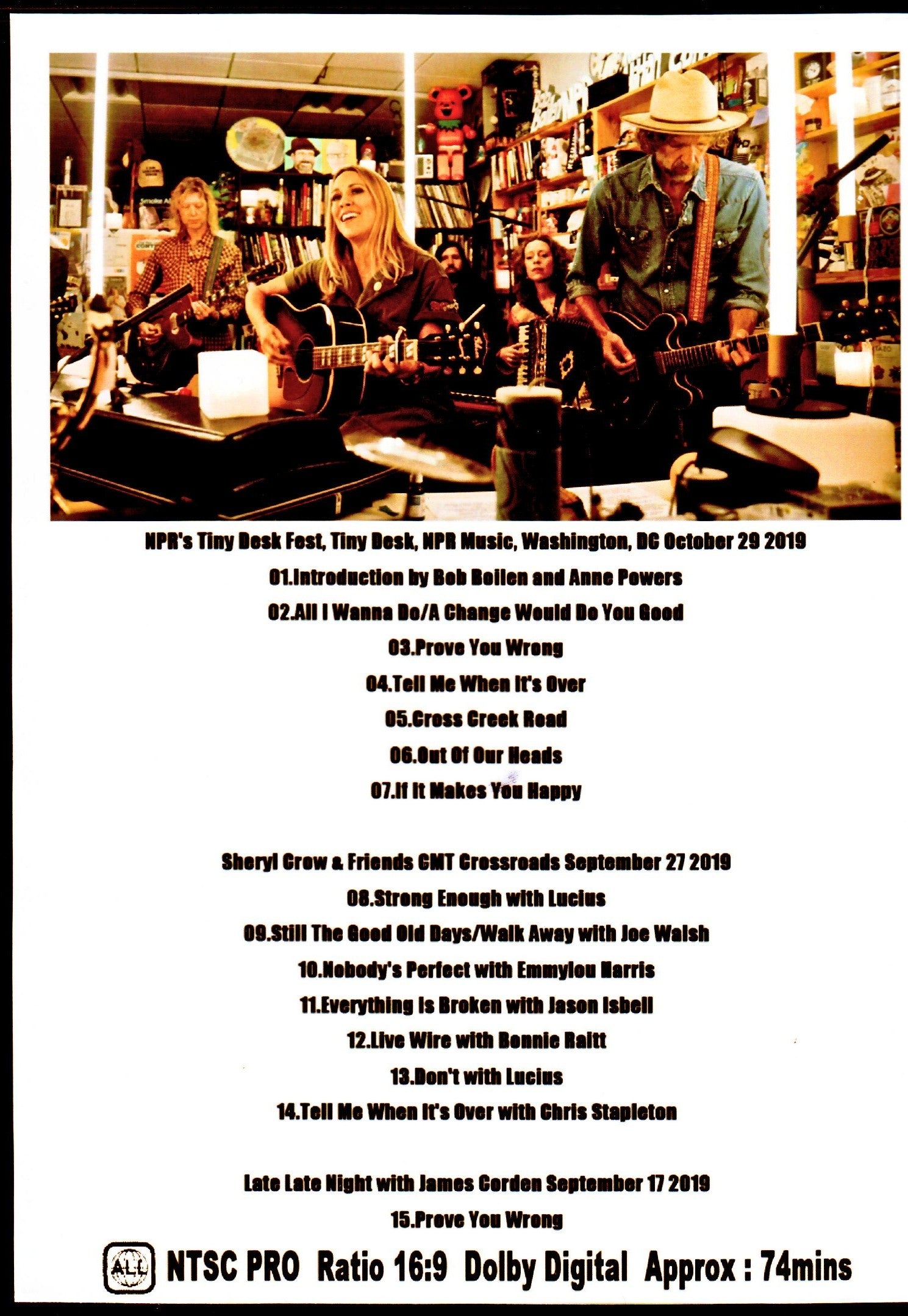 01.Introduction by Bob Boilen and Anne Powers/02.All I Wanna Do/A Change Would Do You Good/03.Prove You Wrong/ 04.Tell Me When It's Over/05.Cross Creek Road/06.Out Of Our Heads /07.If It Makes You Happy *Sheryl Crow & Friends CMT Crossroads September 27 2019 08.Strong Enough with Lucius/09.Still The Good Old Days/Walk Away with Joe Walsh/10.Nobody's Perfect with Emmylou Harris/11.Everything Is Broken with Jason Isbell/12.Live Wire with Bonnie Raitt/13.Don't with Lucius/14.Tell Me When It's Over with Chris Stapleton *Late Late Night with James Corden September 17 2019 15.Prove You Wrong (74 minutes )