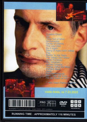 <Songs> Cubano Chant Aja Time Out of Mind Godwhacker Caves of Altimra The Last Mall Do it Again Slang of Ages Peg Reelin' in the Years The Steely Dan Show Janie Runaway Hey Nineteen Haitian Divorce Things I Miss the Most Parkers Band Josie Kid Charlemagne Don't Take Me Alive FM (No Static at All) -with Dean Parks on guitar Pacific Amphitheater Costa Mesa, CA 7.23.2003
