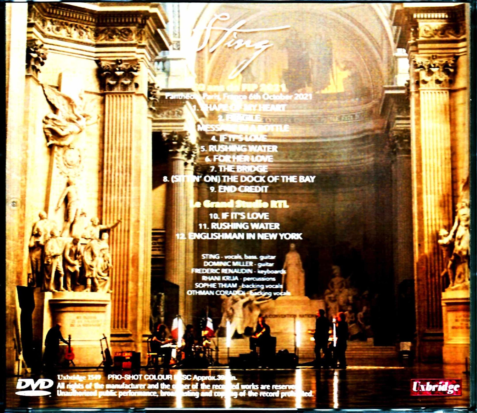Beautiful. A beautiful piece of music has been born. The main character of this work is Sting, who has just released his new album "THE BRIDGE". It is his latest professional shot live performance, but it is also a beautiful work of art that breaks the cutting edge of music video. There are two types of footage in this work. The main footage was shot on "October 6, 2021: Paris". This is a multi-camera professional shot. Although this work is a live video featuring Sting's live performance, it is not a so-called ordinary "concert live". A special live performance held to commemorate the 50th anniversary of the radio station "FIP". It is a performance for about 30 minutes for distribution that was held without an audience. The greatest thing about this work is that it is so artistic, but first of all, the position. Let's check the schedule that has been released so far to find out what Sting is up to now. 2021 * March 22: Private Gig * May 7: AMB NYSE 50th Anniversary Concert * September 22: Reeperbahn Festival ・ September 27-October 1: Europe #1 (3 shows) * October 5-6: France (2 shows) ← ★ Here ★ ・ October 29-November 13: Las Vegas (8 shows) 《November 19th "THE BRIDGE" released》 ・ November 20-21: Greensboro (2 shows) 2022 ・ March 5-April 21: Europe #2 (28 shows) ・ May 10-14: North America (4 shows) ・ June 21-August 6: Europe #3 (30 shows) ・ October 10th Zurich show * Note: "・" is a regular concert, "*" is a special performance. This is Sting in 2021/2022. Europe is still suffering from the COVID-19 pandemic, but Sting has gradually resumed his activities. He has held spot special performances and concert residencies in Las Vegas. This work is part of such a special performance. The performance took place about a month before the release of "THE BRIDGE". Now, to the main topic. This work is special from the site, and it is the "Pantheon CMN" on St. Geneviève Hill. This is an architectural work built as an association in the 18th century, and is now a mausoleum where France's historical greats sleep. The interior is decorated with numerous statues and neoclassical architectural decorations, and is as majestic as a corner of the Louvre Museum. It is not a place where rock musicians do live performances. A huge golden pendulum swings in the middle of the passage, and seven people, including two chorus members, perform live in a circle around it. On top of that, the camera work... or rather, the video production is extremely artistic. With no camera in sight, there are super close-ups of the profile, a full view of the seven members from the picking hands, and high-altitude angles that seem higher than the ceiling...every perspective is used. Moreover, they are extremely cleverly put together. The production is not on the level of a so-called "pro-shot live", but completely on the level of a "latest PV" or "theatrical film". The sepia-like, elegant colors, the blurring of the focus, the camera movement linked to the pendulum, and the CG that is probably being used...all are made in a cinematic way. The technology of 2021 can realize images of the same dimension as the highest quality PV in a single live performance...It is a visual art that makes you realize the greatness of cutting-edge technology. The main video is about 30 minutes long and includes eight songs. No matter how beautiful it is, it is not enough, so three more latest videos have been added to this work. This is a multi-camera pro shot that was just released on "November 20, 2021" with an unknown recording date. This was from an appearance on the music program "Le Grand Studio RTL," and it was a live performance with an audience in the station's studio. This is also a style that we are familiar with, although the video, sound, and camerawork are all perfect and "fully official," but it is a style that we are familiar with. The main Pantheon video is so artistic that it is a professional shot that makes you feel relieved. Finally, let's organize the set that can be seen in the two videos. Classics (4 songs) Main: Message In A Bottle / Fragile / Shape Of My Heart Bonus: Englishman In New York The Bridge (5 songs, 7 takes) Main: If It's Love / Rushing Water / For Her Love / The Bridge / (Sittin' On) The Dock Of The Bay Bonus: If It's Love / Rushing Water ... and so on. The attention is on the new songs of "THE BRIDGE." "(Sittin' On) The Dock Of The Bay" is also a cover of Otis Redding, which was included in the deluxe edition. That being said, the point of this work is not "what is being played" but "the beauty of the image". It is a piece that I would like you to collect on the side of "THE BRIDGE", but more than that, I would like you to know the reality that in the age of 2021, live performances of popular music can be made so beautiful. Such a dimension of video art. Multi-camera pro shot of "October 6, 2021: Paris". It is an audience-free performance held to commemorate the 50th anniversary of the radio station FIP, but what is shocking is the extremely artistic beauty of the image. The neoclassical mausoleum is like the Louvre Museum, and with no camera in sight, it makes full use of all perspectives, from super close-ups to panoramic views and aerial angles. The quality is not a so-called "pro shot live", but completely on the level of a "theatrical film". In addition, it is the latest pro shot in which three new songs from "THE BRIDGE" are played in abundance, but rather it is a video art work that shows off the latest technology of 2021. Panthéon, Paris, France 6th October 2021 PRO-SHOT 50 ans de FIP 2021 1. Shape Of My Heart 2. Fragile 3. Message In A Bottle 4. If It’s Love 5. Rushing Water 6. For Her Love 7. The Bridge 8. (Sittin’ On) The Dock Of The Bay 9. End Credit Le Grand Studio RTL 10. If It’s Love 11. Rush ing Water 12. Englishman In New York PRO-SHOT COLOR NTSC Approx.39min.