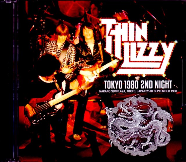 Live at Nakano Sunplaza, Tokyo, Japan 25th September 1980 STEREO SBD(from Original Master)*UPGRADE Disc 1(45:47) 1. Intro. 2. Are You Ready? 3. Hey You 4. Waiting For An Alibi 5. Jailbreak 6. Genocide 7. Do Anything You Want To 8. Don't Believe A Word 9. Killer On The Loose 10. Got To Give It Up 11. Memory Pain Disc 2(43:41) 1. Chinatown 2. The Cowboy Song 3. The Boys Are Back In Town 4. Suicide 5. Black Rose 6. Sugar Blues 7. Baby Drives Me Crazy Philip Lynott - Vocal, Bass Scott Gorham - Guitar Snowy White – Guitar Brian Downey - Drums Darren Wharton - Keyboards STEREO SOUNDBOARD RECORDING