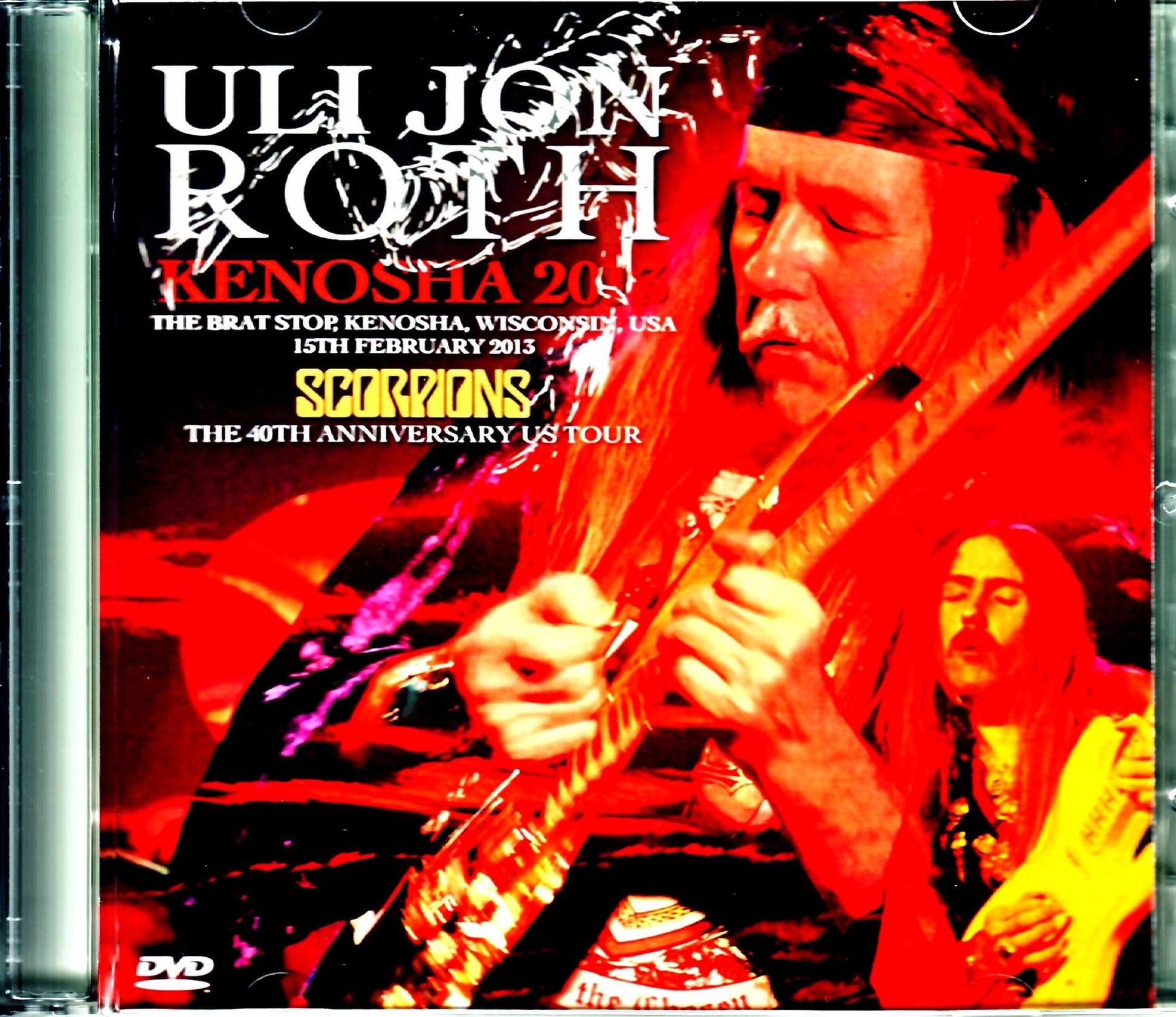Although Uli Jon Roth has not released an album since the release of "UNDER A DARK SKY" in 2008, he has been performing live more actively than ever, giving wonderful performances in the United States and European countries. In particular, during his North American tour from January to March 2013, he performed a special set in which most of the live performance was SCORPIONS numbers, commemorating the 40th anniversary of Uli joining SCORPIONS. This tour attracted a lot of attention not only from European and American fans, but also from Japanese fans. From the 2013 North American tour, which has had multiple live recordings released since the tour, this time we present the live video from Kenosha, Wisconsin on February 15th, in superb quality! The live performance started with "All Night Long," which SCORPIONS only performed live when Uli was a member. Fans are familiar with the take of "TOKYO TAPES", but no one could have predicted that a live performance would start with this song again in 2013, 35 years later. The video is a multi-camera specification edited from multiple audience shots, and it is recorded with outstanding clarity and visibility, from the whole view of the stage to the close-up of the player. In particular, the main shot taken from the front row on the left side of the stage is powerful, and Uri's guitar play is captured in detail and clearly. The accurate picking and impressive arming are interesting images for those who play guitar (in some scenes, you feel like you're watching a professional shot. Also, Uri tuning between songs is a must-see). The sound is excellent like a line sound source, and the quality is sure to satisfy all fans. It is not just a sprinkling of famous songs from the SCORPIONS era, but also a selection of songs that will make even enthusiasts groan. This tendency is especially strong in the first half, where they play surprising numbers such as "Longing For Fire" from "IN TRANCE", "Crying Days" from "VIRGIN KILLER", and "A Day Late And A Dollar Short" which Uri played on Ian Gillan's "GILLAN'S INN". However, from the middle of the live "Life's Like A River" onwards, there are a lot of songs that any Japanese SCORPIONS fan will enjoy. A number of songs suitable for a special tour, such as "The Sails Of Charon" (featuring violin by guest Rachel Barton Pine) where you can enjoy Uri's heavy guitar, "They Need A Million" which is a hidden masterpiece from "FLY TO THE RAINBOW", and rare numbers from "IN TRANCE" such as "Sun In My Head" and "Evening Wind", are revived with outstanding playing and arrangement. The vocalist here is Henning Basse of the German band SONS OF SEASONS. As expected of someone who was chosen by Uri, he has a strong talent and delivers powerful vocals in numbers such as "We'll Burn The Sky," "Pictured Life," and "Catch Your Train." The climax of the live performance was the performance of covers of Bob Dylan and Jimi Hendrix's "All Along The Watchtower," "If 6 Was 9," and "Little Wing," concluding the 163-minute live performance. The live performance lasted more than two and a half hours and was full of things to listen to and see. Although the songs were mostly from the past, it made us realize that Uri has risen to even greater heights as a musician and guitarist. This is a two-disc set (with an original menu, of course!) that would normally be released. Please enjoy Uri's great performance to the fullest! Live at the Brat Stop, Kenosha, Wisconsin, USA 15th February 2013 AMAZING-SHOT!!! Disc 1(77:21) 1. All Night Long 2. Longing For Fire 3. Crying Days 4. A Day Late And A Dollar Short 5. Life's Like A River 6. The Sails Of Charon 7. They Need A Million 8. Sun In My Head 9. Hell Cat 10. Evening We'll 11. Burn The Sky Disc 2(85:55) 1. In Trance 2. I've Got To Be Free 3. Fly To The Rainbow 4. Polar Nights 5. Dark Lady 6. Pictured Life 7. Catch Your Train 8. All Along The Watchtower 9. If 6 Was 9 10. Little Wing Uli Jon Roth - Guitar, Vocals Henning Basse - Vocals Ali Clinton - Guitar, Vocals Niklas Turmann - Guitar, Vocals Ule W. Ritgen - Bass Jamie Little - Drums Corvin Bahn - Keyboards Rachel Barton Pine - violin COLOR NTSC Approx. 163min.